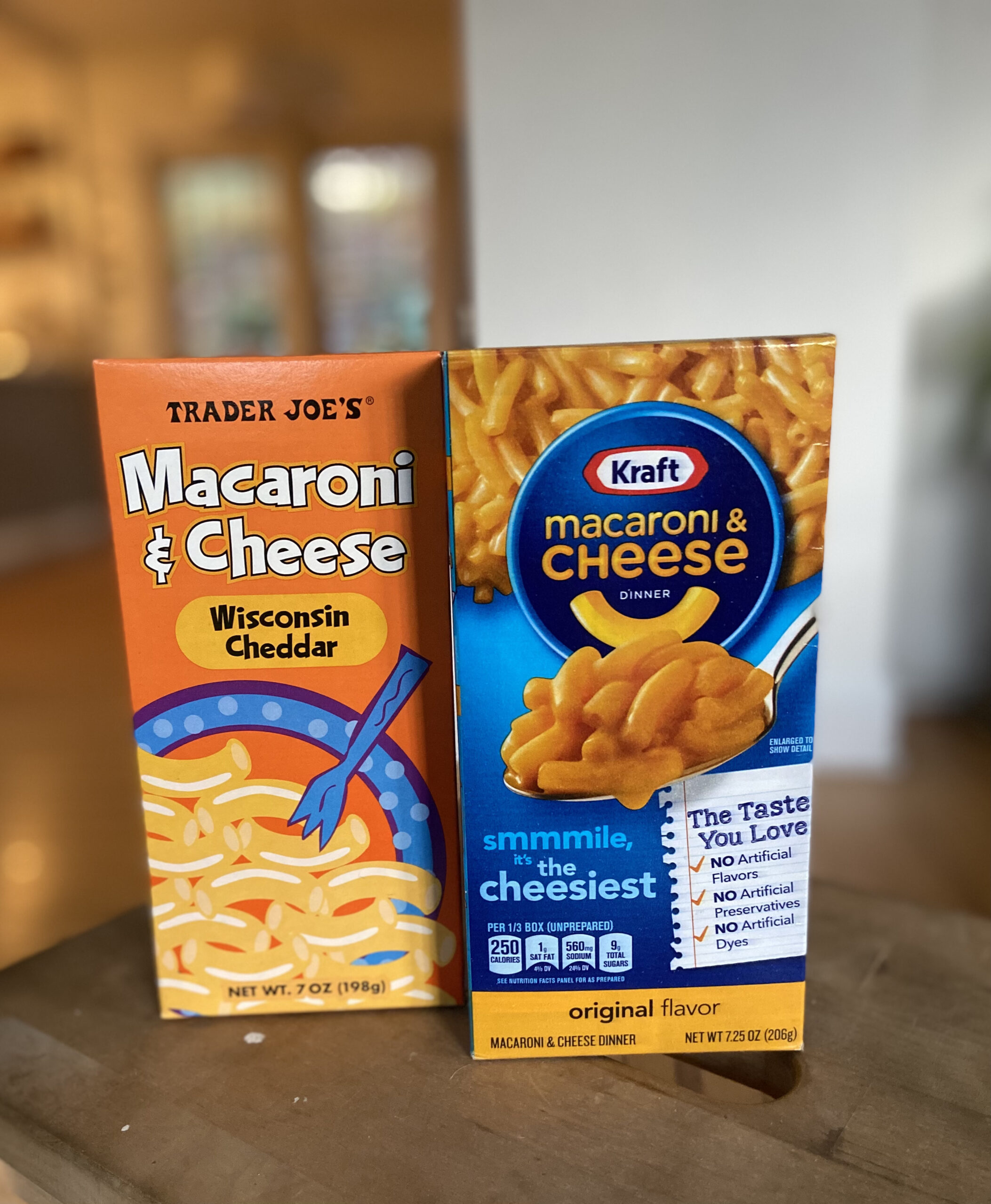 It had been forever since I’d made mac and cheese from a box, even though it was one of my great pleasures as a young kid. So, I followed the cooking instructions to the letter and was alarmed to find that the original called for four tablespoons of butter in addition to the milk and cheese packet. How do you compete with four tablespoons of butter in anything? Well, the truth is, you can’t beat the mouthfeel on Kraft, but the Trader’s version had a more umami-level sharpness to its flavor that I’d say significantly compensated. I grew up with Kraft, but Trader Joe’s was just better.