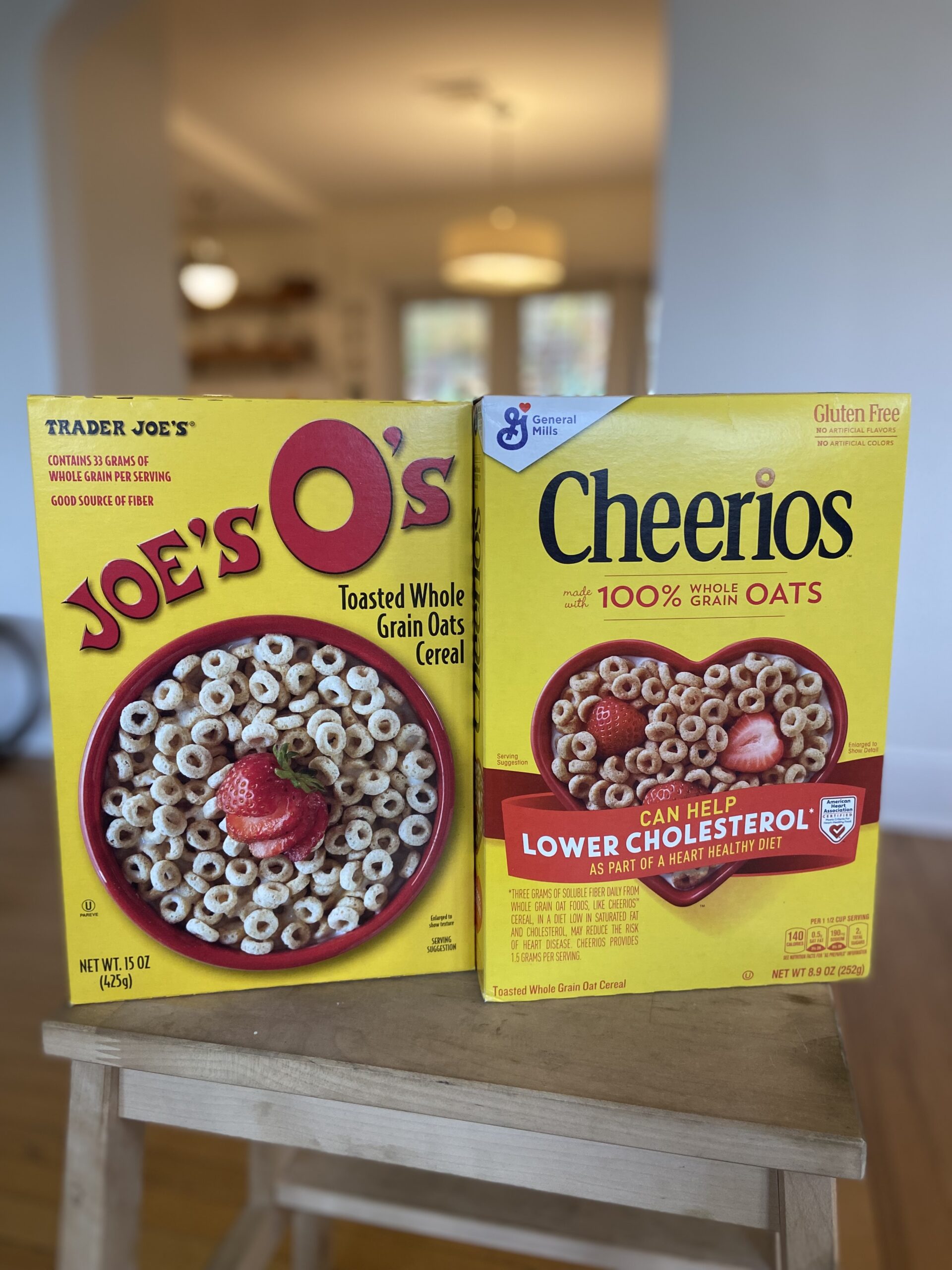 I guess I shouldn’t be surprised, but there was no contest with this duo. “Trader Joe’s just disappears, there’s no taste,” reviewed Joanna. “Cheerios are oatier.” I agree on both points, and add that the texture of a Cheerio is almost elegant when compared with the knockoff, which turns to mush way more quickly in a bowl of milk.