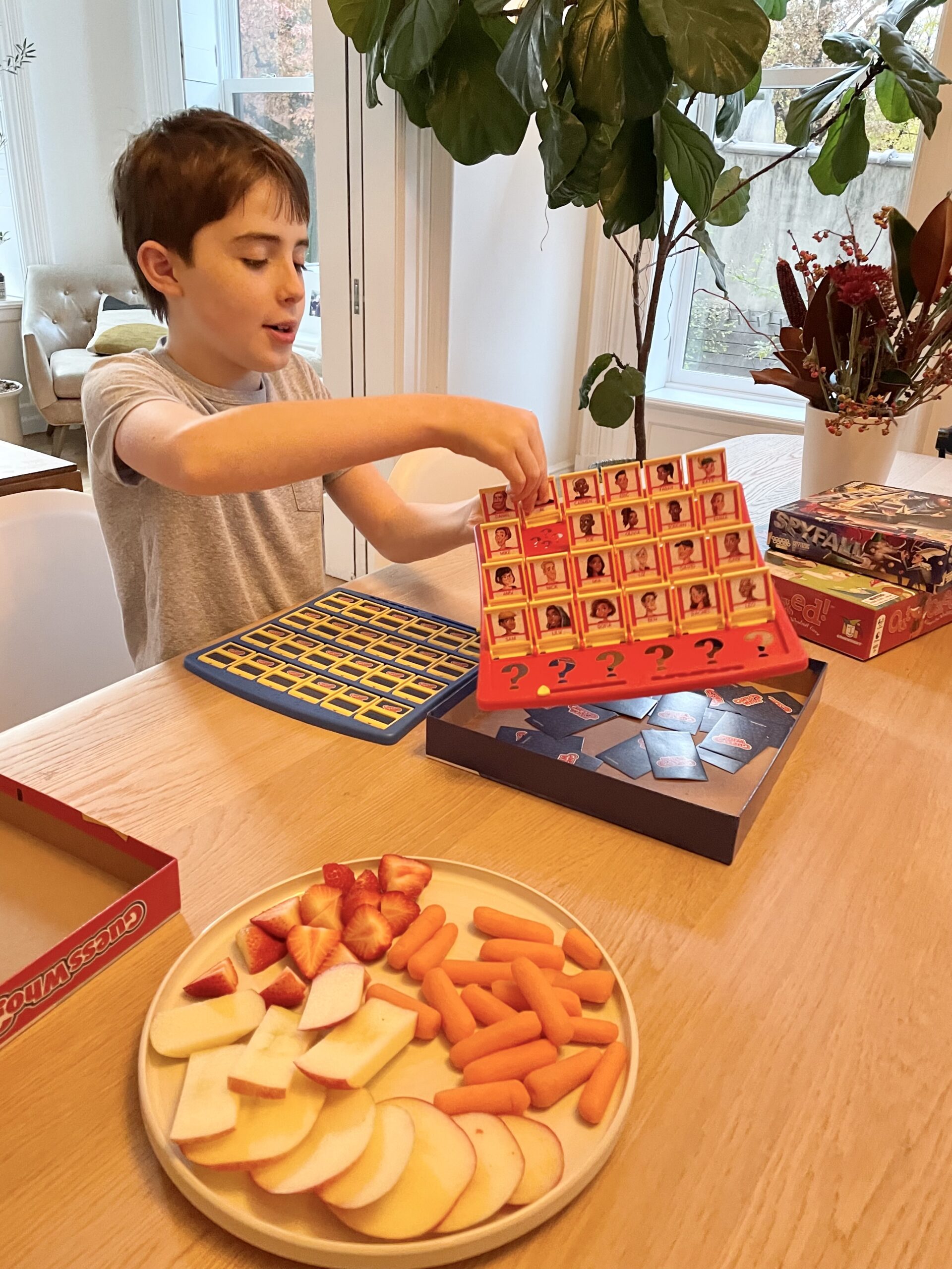 Recently, our family has gotten into Guess Who, the classic game where you ask yes-or-no questions (“Is your person wearing a hat?” “Does your person have blonde hair?”) to figure out the other player’s character. We can pass some serious time playing this, and we all enjoy it, even the grown-ups.