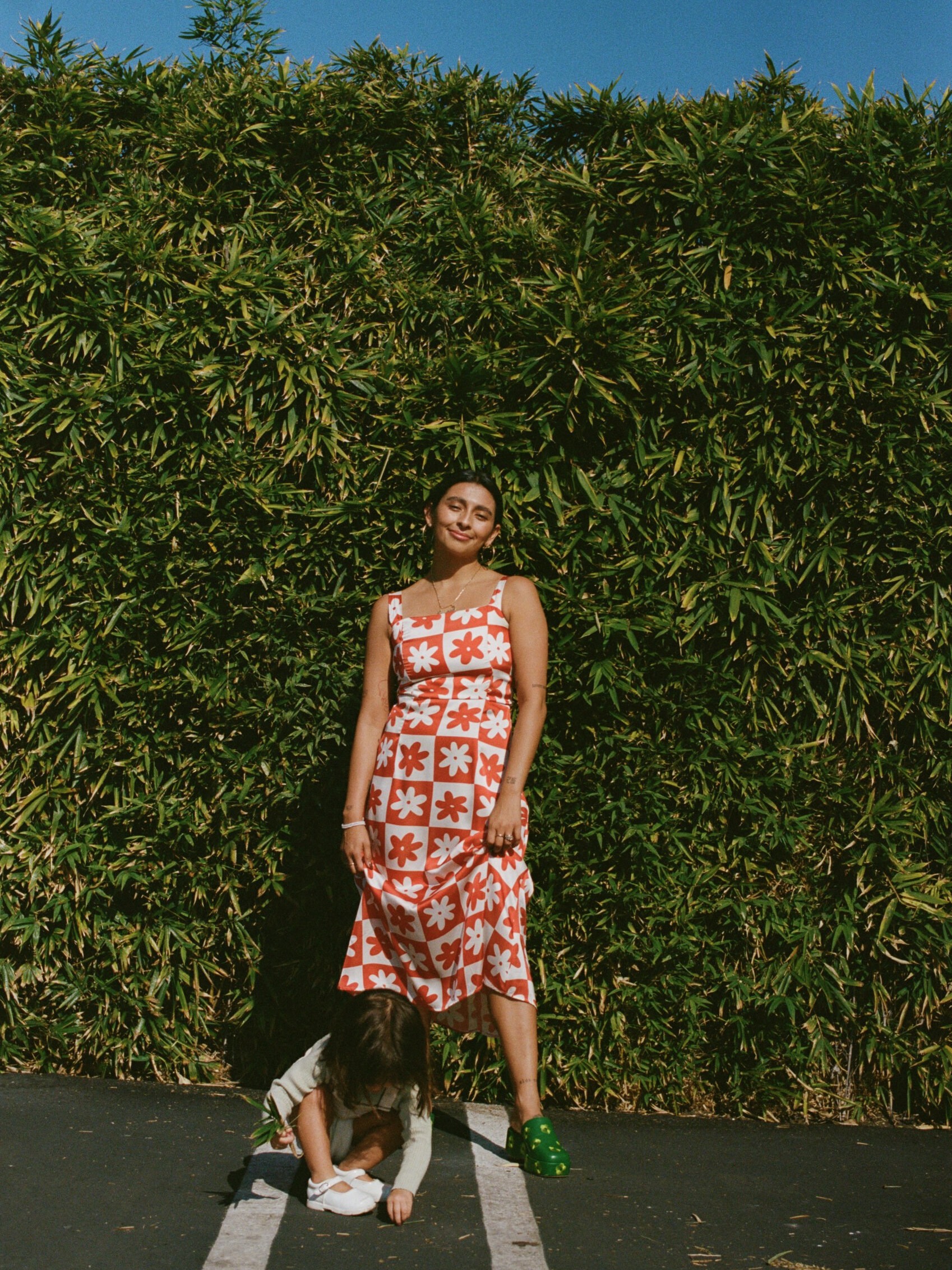 Dress: Lisa Says Gah, similar. Shoes: Lisa Says Gah. Child’s dress: Zara, similar. Child’s sweater: Zara, similar. Shoes: Vintage, similar.