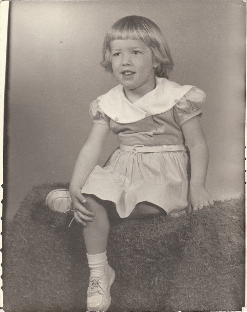 …with a photo of my mom when she was three, living in Manchester, England. How cute are those bangs?!