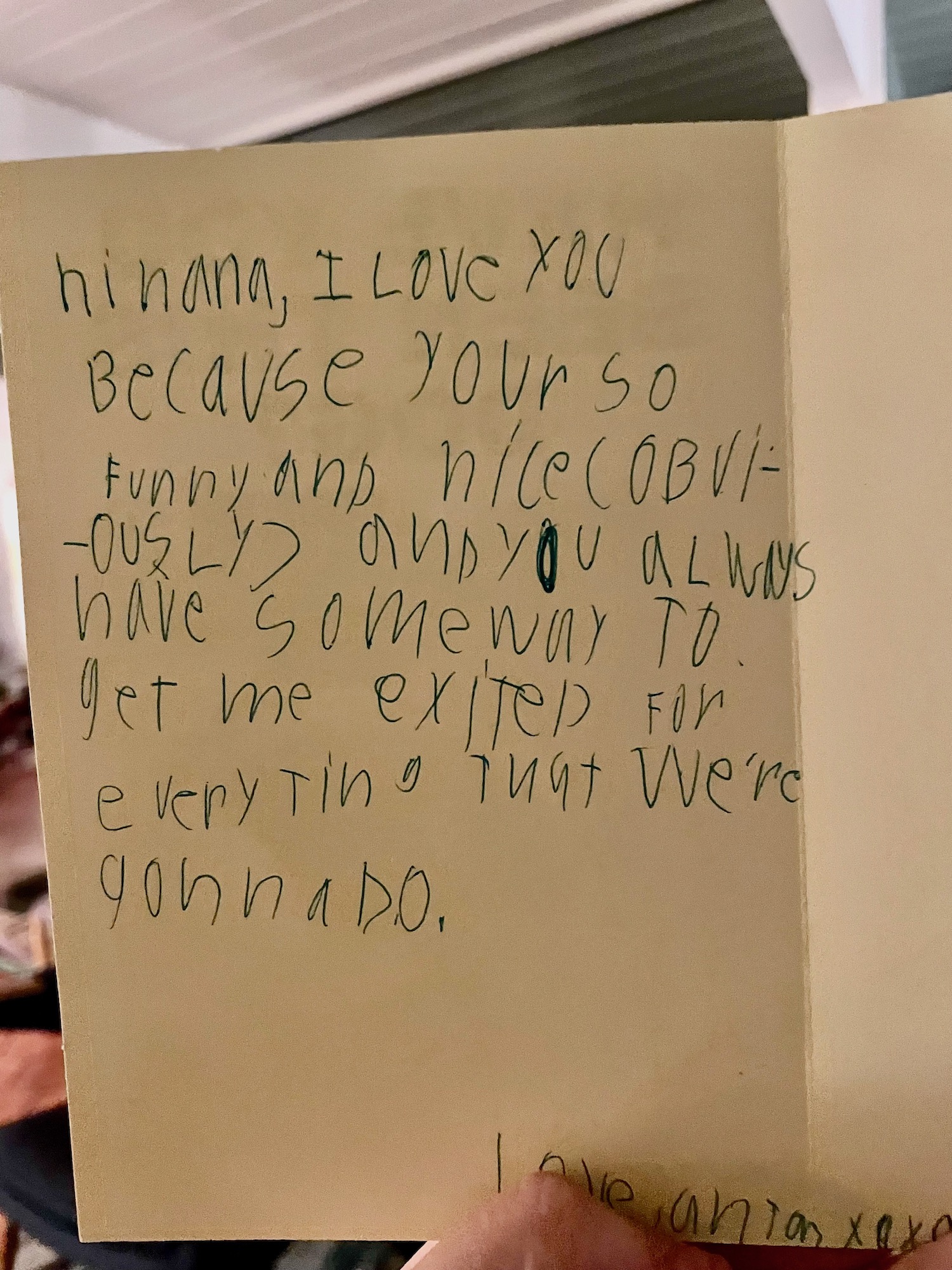 At the end of the night, the kids presented hand-written notes saying how much they love her. Eight-year-old Anton captured how we all feel. Happy Birthday, Mom. xoxoxo