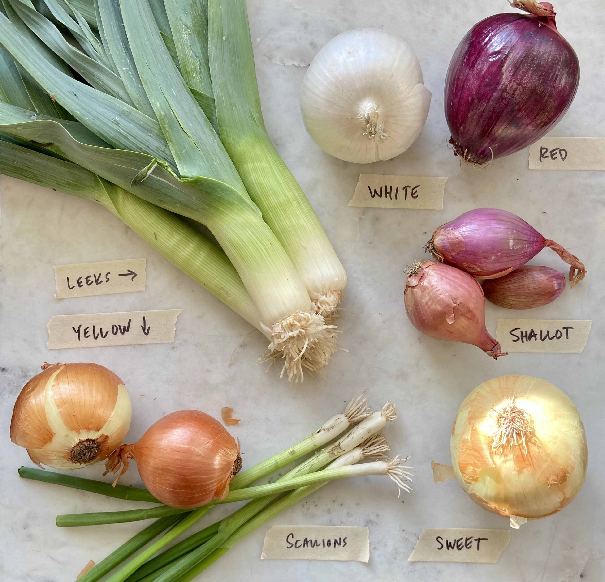 Last week, Cup of Jo reader Kris asked if we could talk about different kinds of onions and the best ones to use for which recipes — and I’m so glad she did. I usually have some combination of the six main varieties you see above, but use them interchangeably when I have to, and I’ve always wondered what the food police would say about this. The answer? It’s not a big deal, but, not surprisingly, there are definitely specific recipes that call for specific onions for very specific reasons.