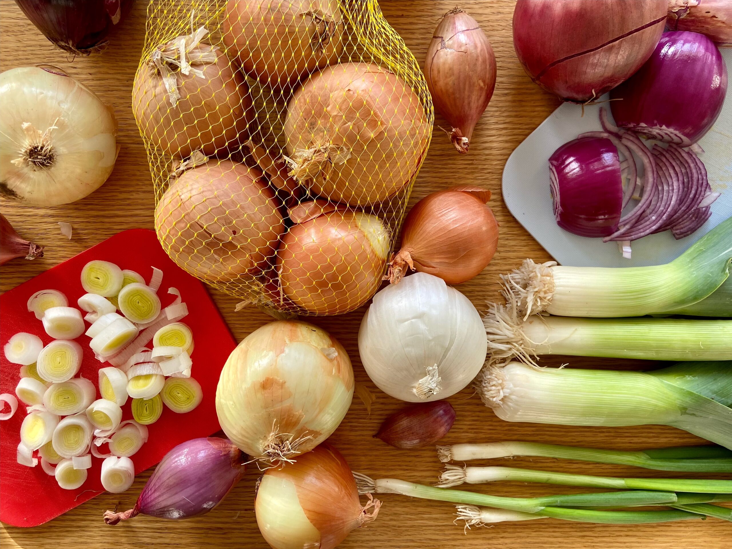Also known as green onions, you can’t put these slender alliums into any one box. They are mild, crispy and pretty, making them a go-to garnish onion. (My stir-fry dishes, green salads, grain bowls and chilled soups feel naked without them.) But also, they’re just as dependable as a flavor builder when cooked (into a stir-fry with their besties ginger and garlic) or when charred (and used as a topping for pizzas and creamy soups) or baked into biscuits or scones.