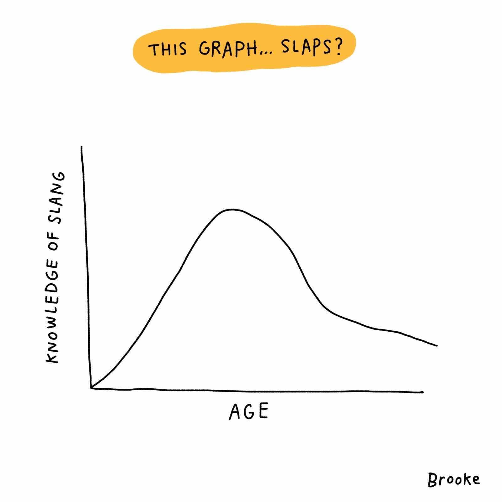 I suggest it’s ok to tell a different story about this though, rather than seeing it as evidence of an adult’s irrelevance and obsolescence (which is ageism). Slang is just language evolving, part of the ever ongoing changes of life. Why not enjoy it?