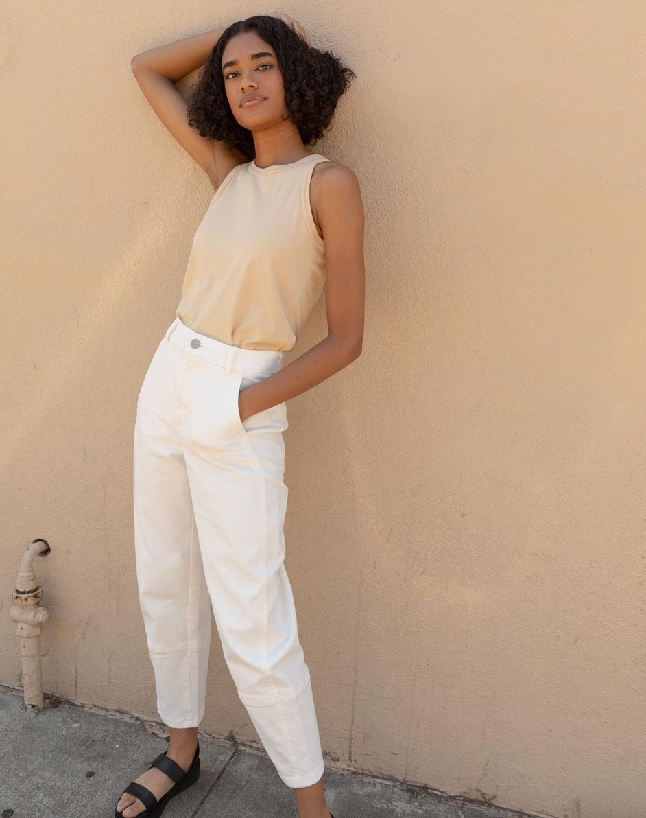 “Birkenstocks work well with jeans, shorts, dresses — they’re just so versatile. They used to be my crunchy shoe, but now with the brass buckle, I can wear them out to dinner. Also, I never thought I could get away with wide-leg jeans because I’m short! But then I tried these and they felt cute and put together. Those pants, plus a T-shirt or tank, was my go-to outfit last summer, and I plan to do the same this year.”
