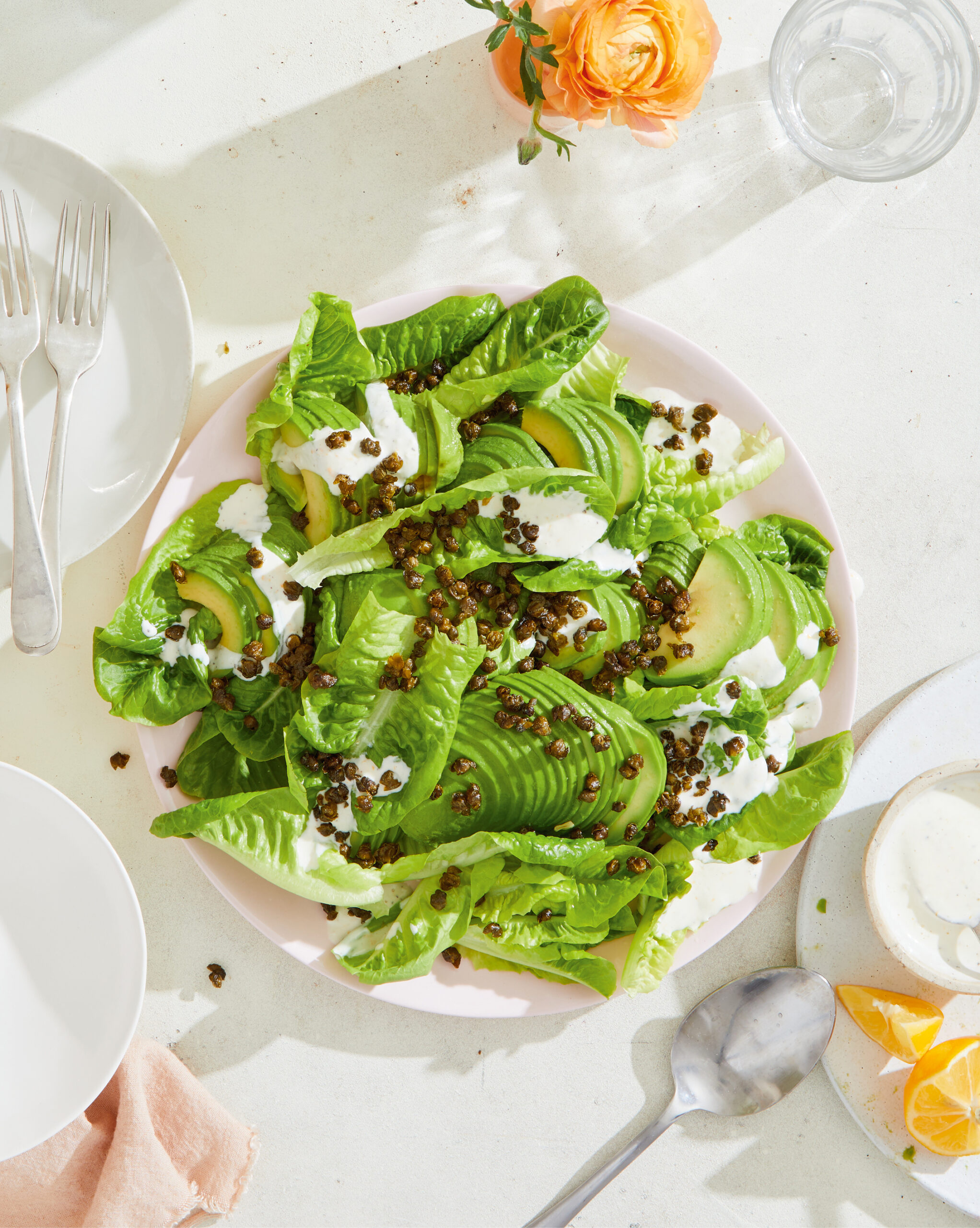 There’s an entire chapter dedicated to crispy things in Jessie Damuck‘s gorgeous book Salad Freak, but I was instantly sold on the way she used fried capers in a green salad, because that way, you’re essentially getting two (texture, pop) for the price of one. “Capers are amazing,” Damuck writes. “Frying makes them even better because it adds a crunch to their saltiness, and they make a simple salad really, really good.” In the salad above, she combines them with fresh lettuce, smooth avocado, and a creamy lemony-yogurt dressing.