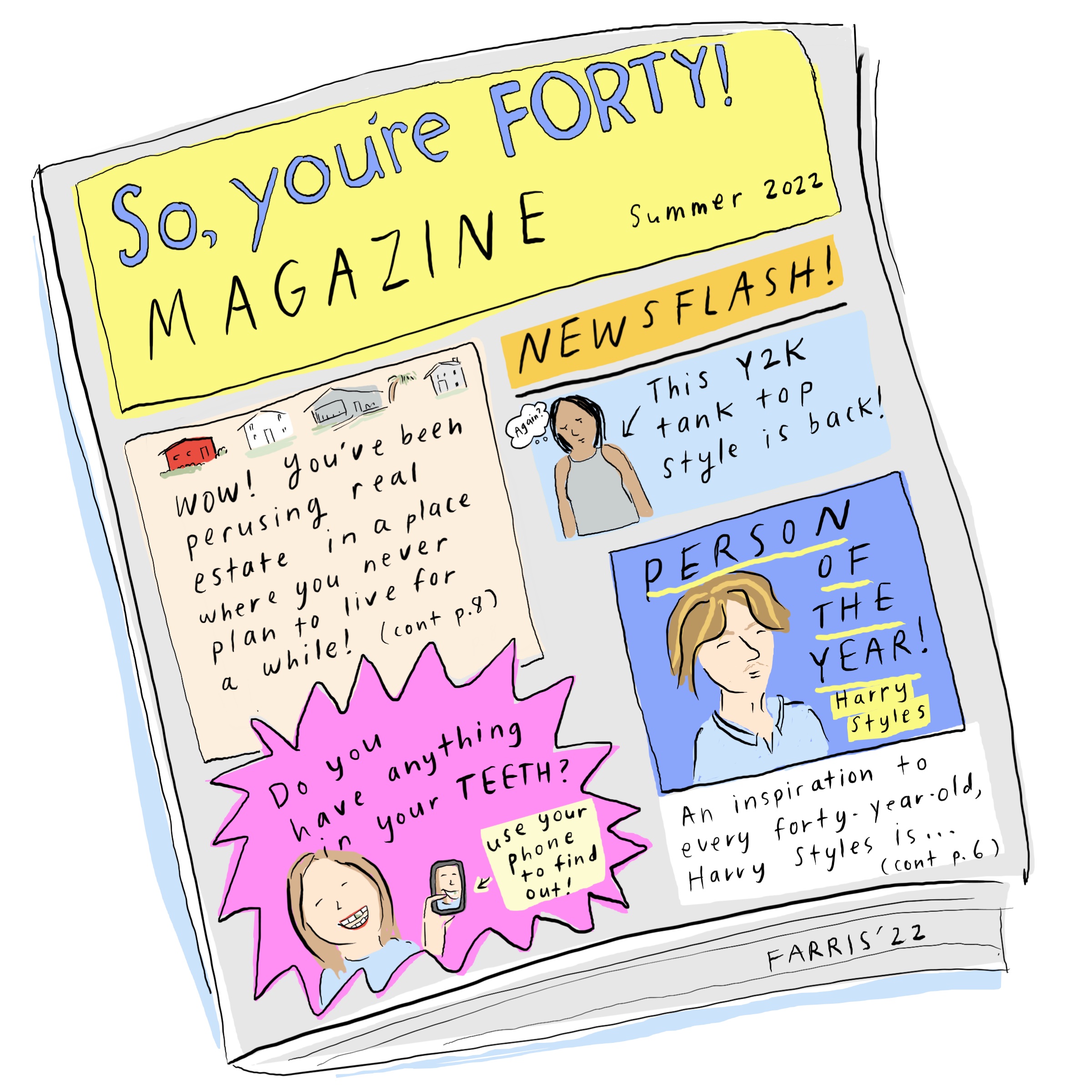 Okay people, I have news for you. Forties can be the best years of your life if you don’t spend them worrying about it. When you hit sixty you will wonder what all the fuss was about. I hit seventy last year and that is supremely depressing, but when I hit eighty I will reminisce about the good old days when I was 70.