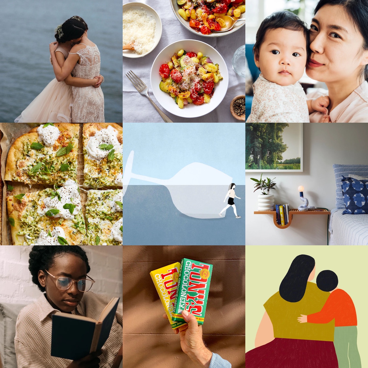 (Photo layout by Stella Blackmon. Grid from top to bottom, left to right: romance reader comments photo by Jennifer Brister/Stocksy; squash gnocchi photo by Yossy Arefi, popular baby names photo by MaaHoo Studio/Stocksy, zucchini pizza photo by Christine Han for The Weekday Vegetarians, quitting drinking illustration by Alessandra Olanow, Brooklyn house tour photo by Genevieve Garruppo, three great books photo by Studio Firma/Stocksy, the easiest relationship tip photo by Joanna, how to raise gracious children illustration by Abbey Lossing.)