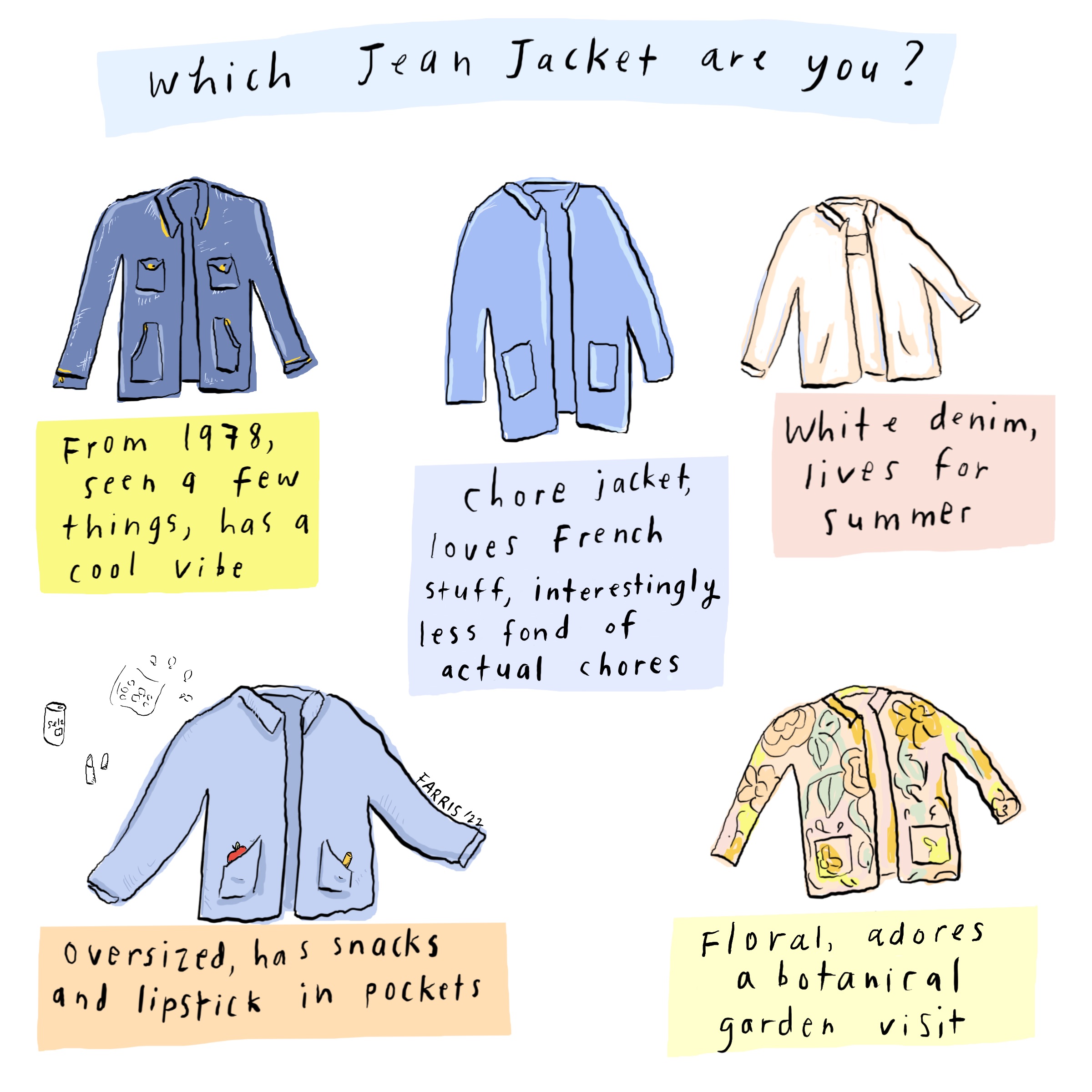 I have a blue denim jean jacket, a white denim jean jacket, a waxed black cotton jean jacket, and a corduroy jean jacket. And I love them all!