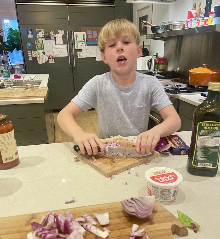 The other day, Anton was cutting up onions for chili, and, while struggling through the tears, told me: “I’m a Navy Seal at chopping onions.”