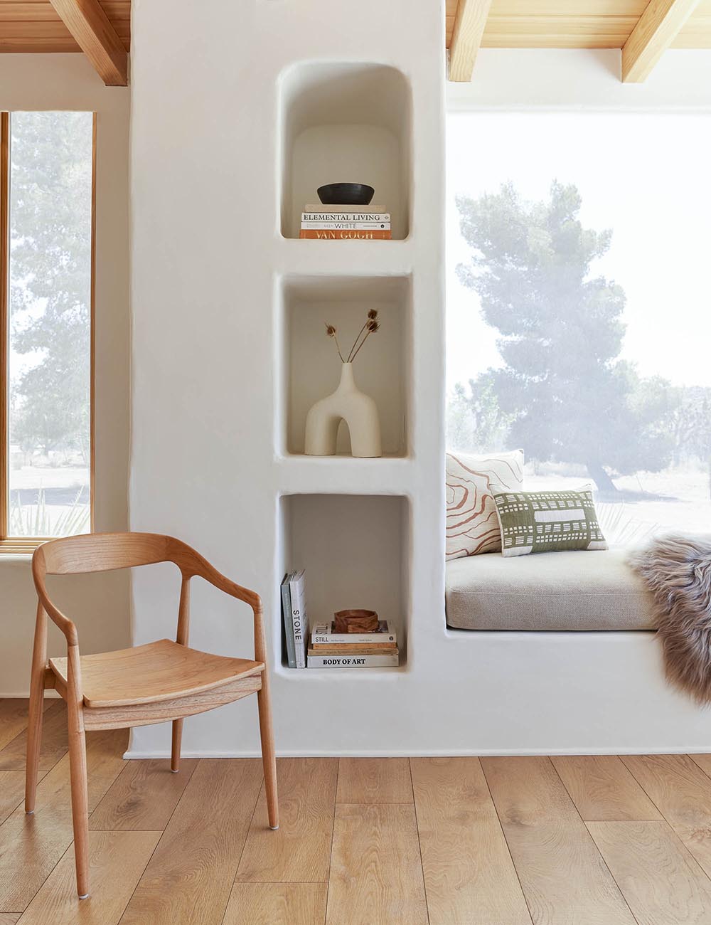 And how calming is this bedroom? The velour platform bed paired with this bouclé bench makes me want to take the world’s coziest nap. And wouldn’t you love to wrap yourself up in this fuzzy blanket?
