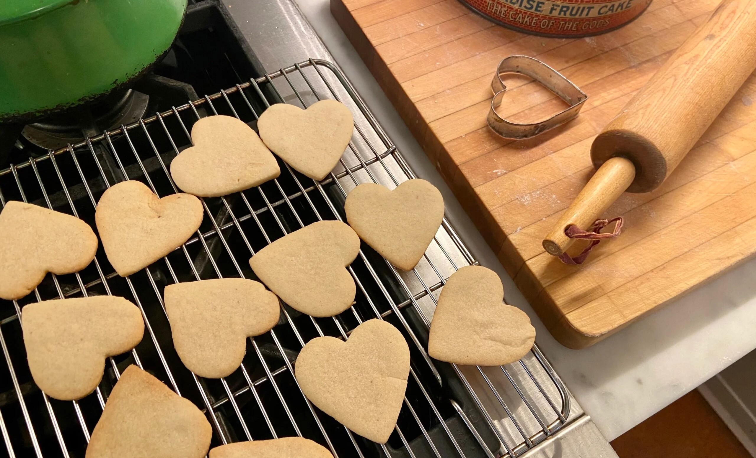 But I’m a purist when it comes to baking — another way of saying I am not super adventurous — so I ended up making a batch of classic sablés, which also happen to be my daughter’s favorite. Sablé is French for “sandy” and, according to Beranbaum, “the French tradition is to add the smallest amount of flour possible to make the most buttery of cookies…This results in a wondrously fragile cookie.” Phoebe loved them. They were delicately spiked with walnuts and, importantly, easy to shape into hearts.