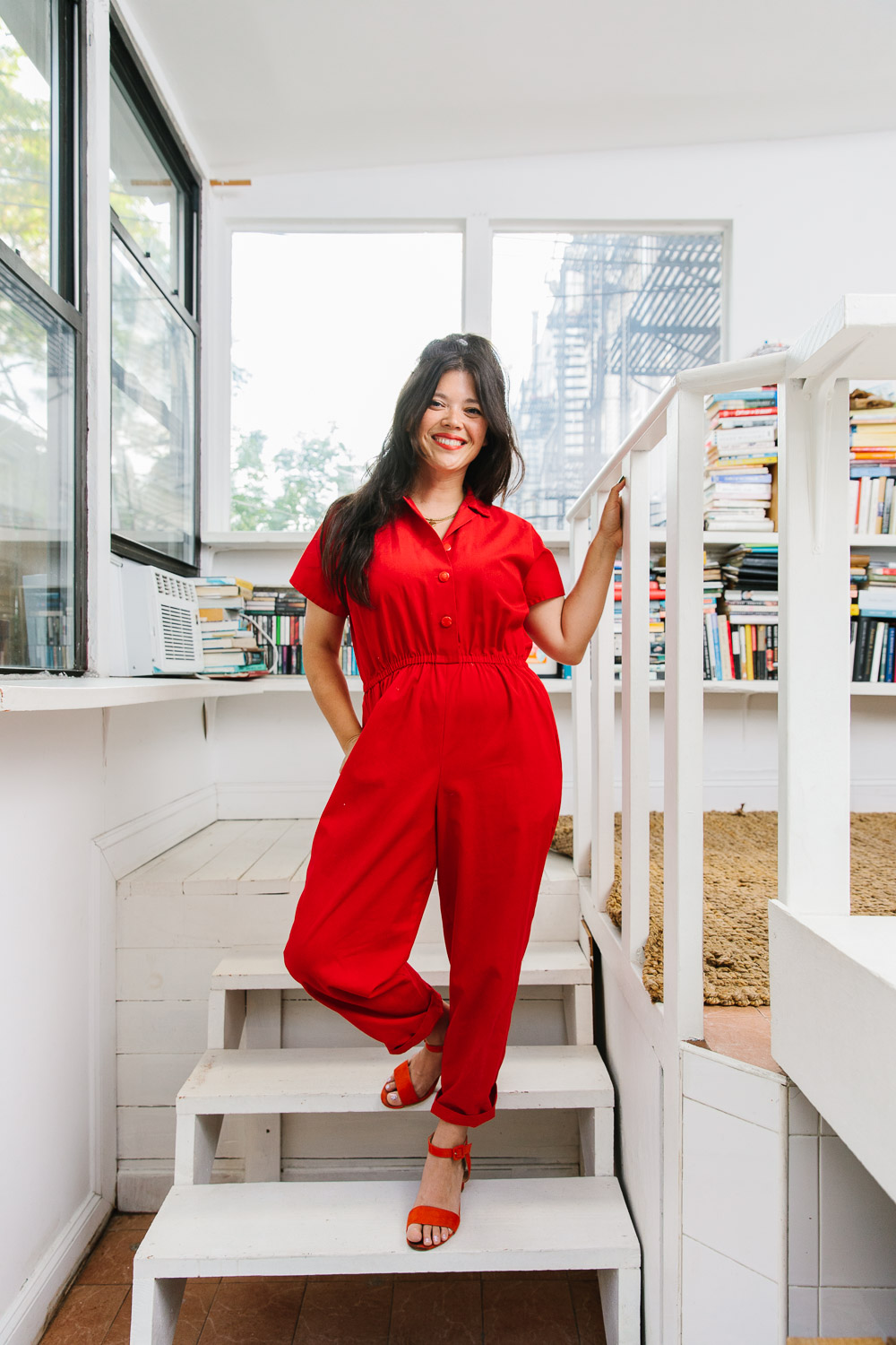 “Red is such a powerful color for me. In Chinese culture, it represents love, celebration and the new year. I thrifted the jumpsuit for $20 and have worn it for the past 10 years. The shoes are from Loft. Their shoes are well priced and SO comfortable. After I gave them a test run, I ended up buying two more pairs. When I find a piece I love, I’ll buy multiples — I picked up that habit from my mom.”