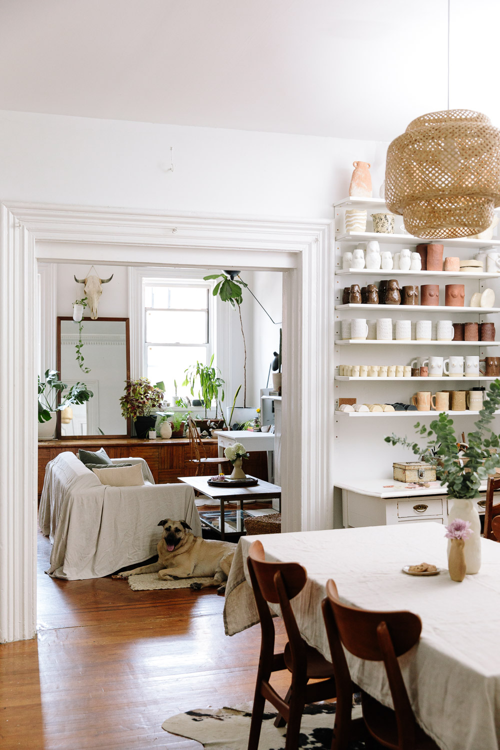 On first impressions: When we first saw this apartment, it wasn’t in great shape. There was a broken light in the kitchen. There was a diaper in the toilet! But I walked into the living room and felt like this space had to be in our life. My husband was like, no way, I hate that apartment. But in the end he trusted that I had a really good feeling.