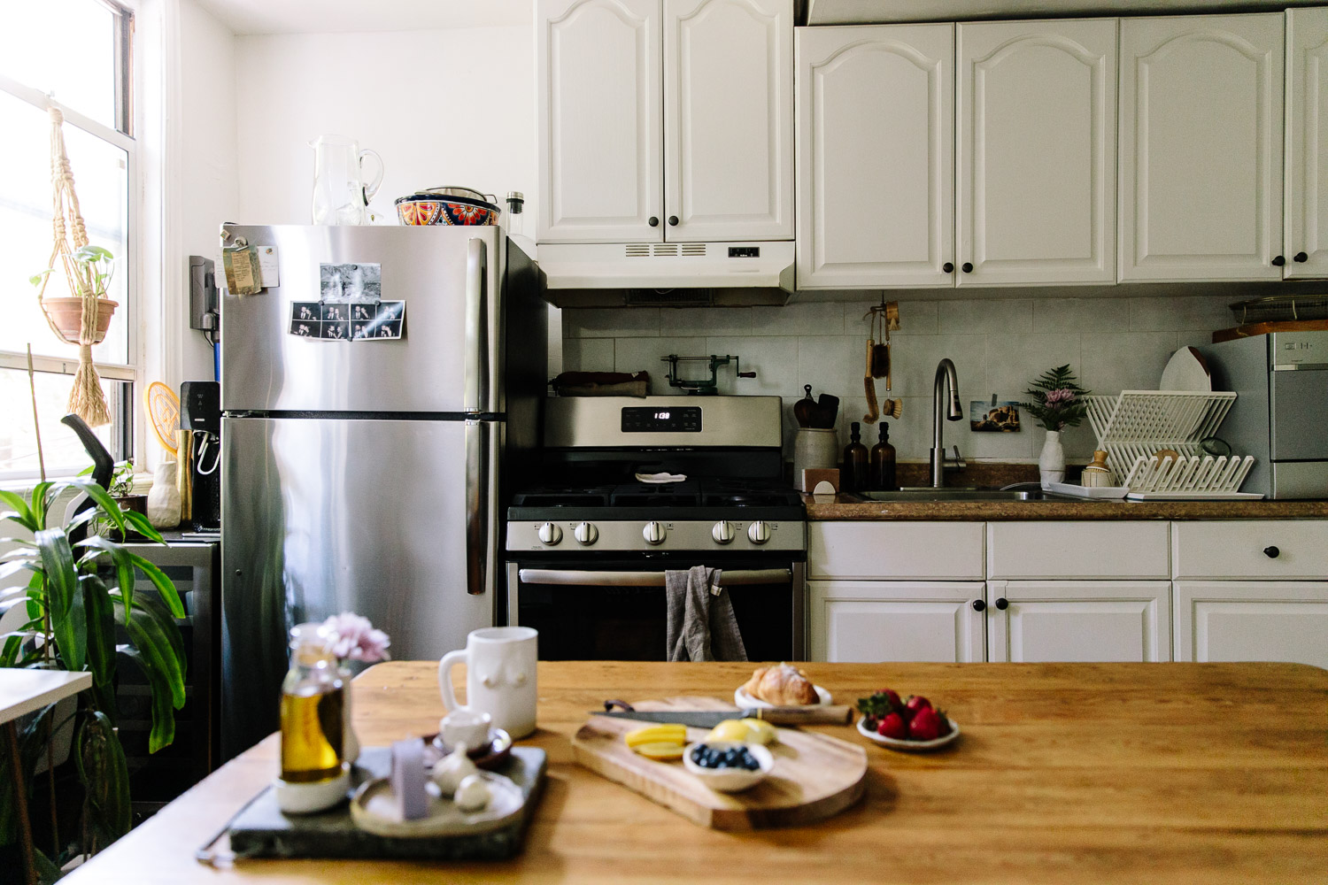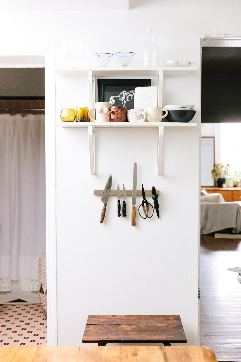 On an evening ritual: Another kind of weird thing is that the bathroom is right off the kitchen, which feels sort of odd. But it’s also sweet because at night after a long day, I’ll be cooking dinner, and Jack will be in the shower, and we’ll be chatting, and it’s such a nice way to unwind.