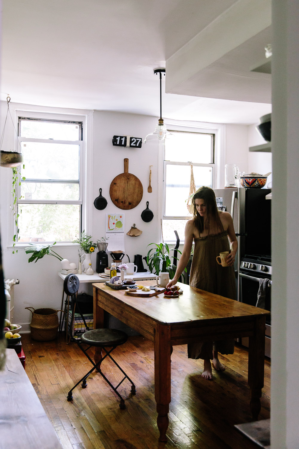 On an evening ritual: Another kind of weird thing is that the bathroom is right off the kitchen, which feels sort of odd. But it’s also sweet because at night after a long day, I’ll be cooking dinner, and Jack will be in the shower, and we’ll be chatting, and it’s such a nice way to unwind.