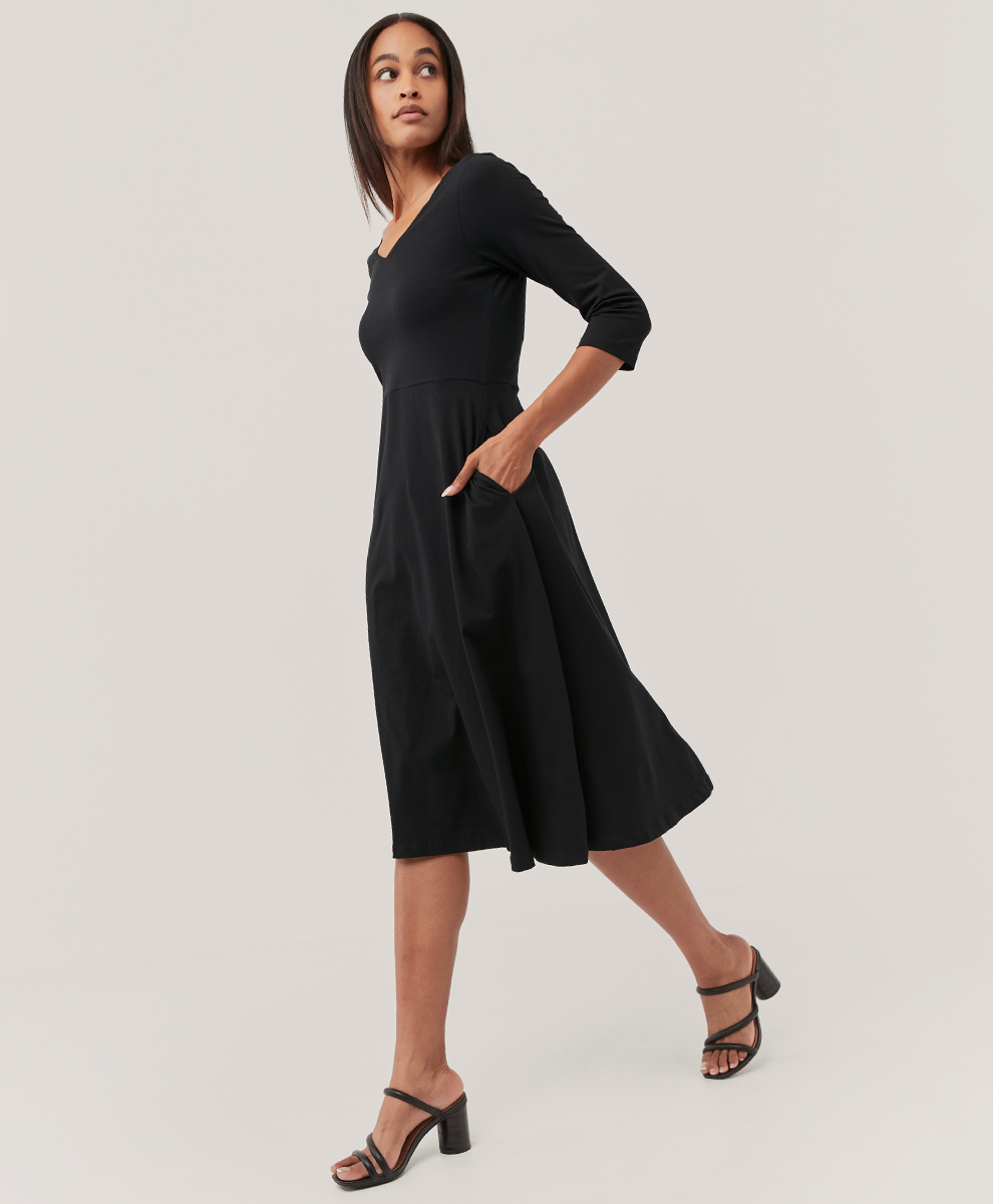 The graceful silhouette of this midi-dress makes it perfect for dinners out or family gatherings, and I’ve always loved 3/4 sleeves. Bonus: it comes in 10 colors and has pockets!