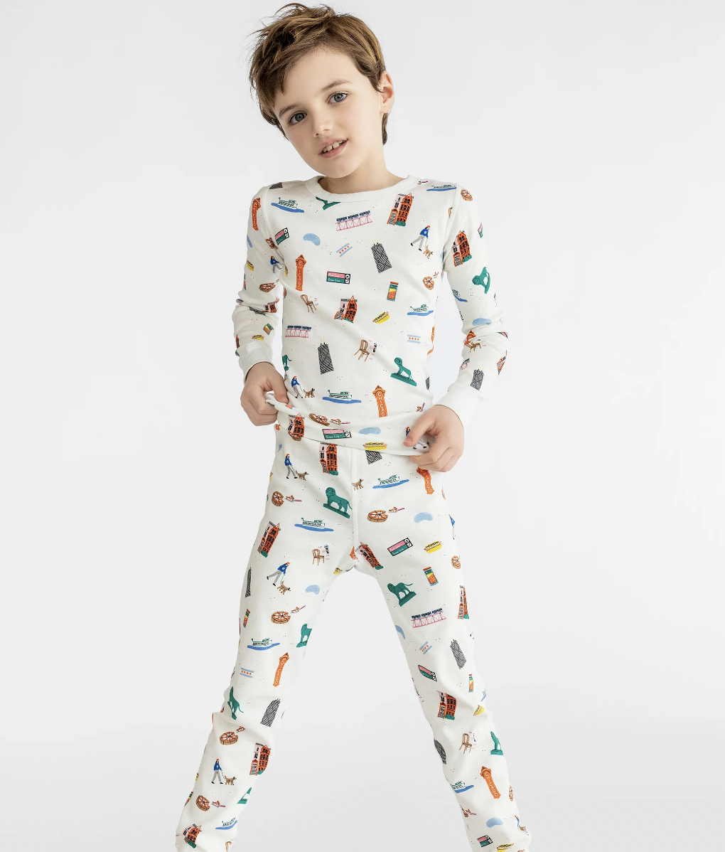 Pajamas with cities, cute dogs or favorite books. From $22.