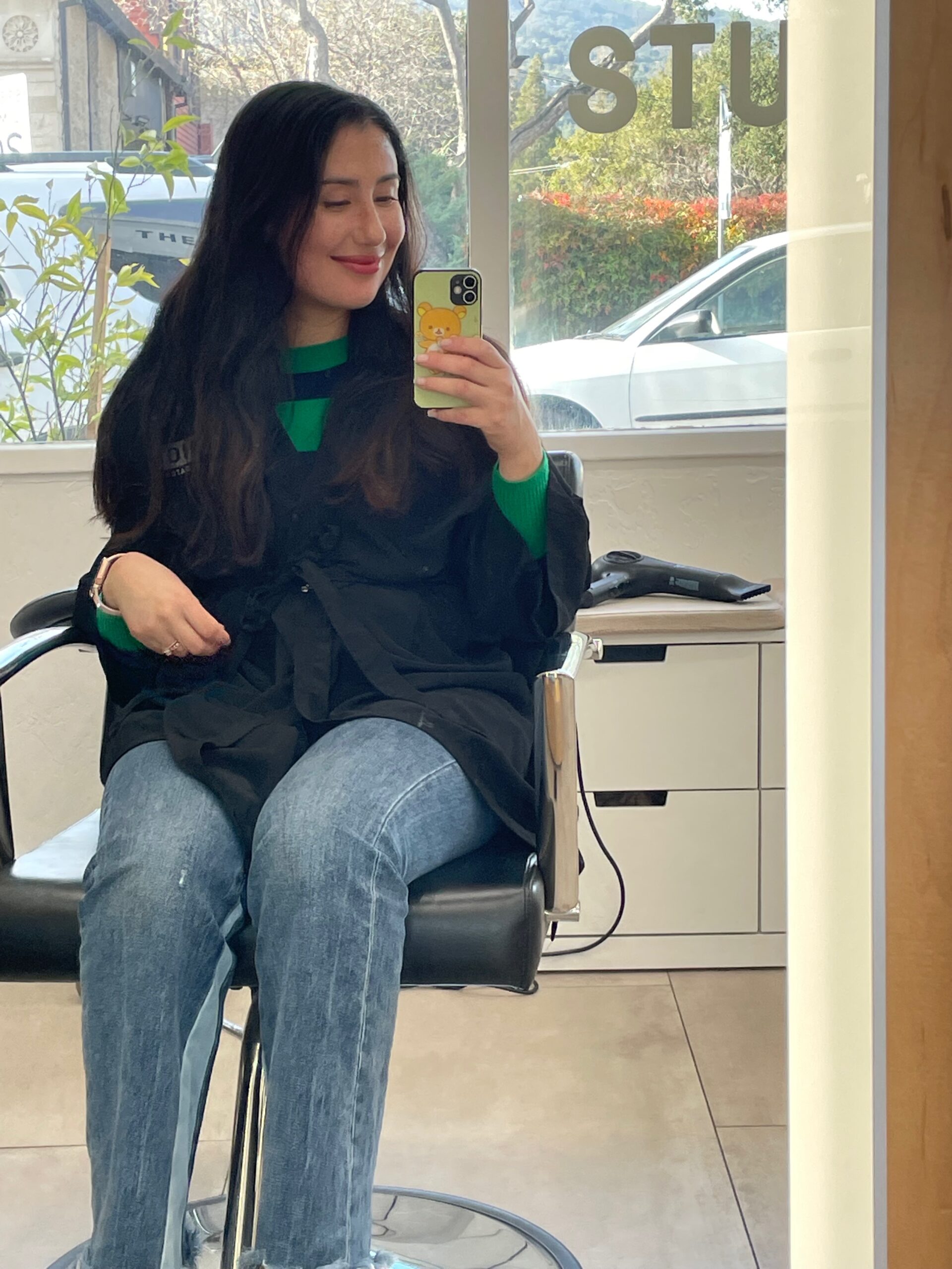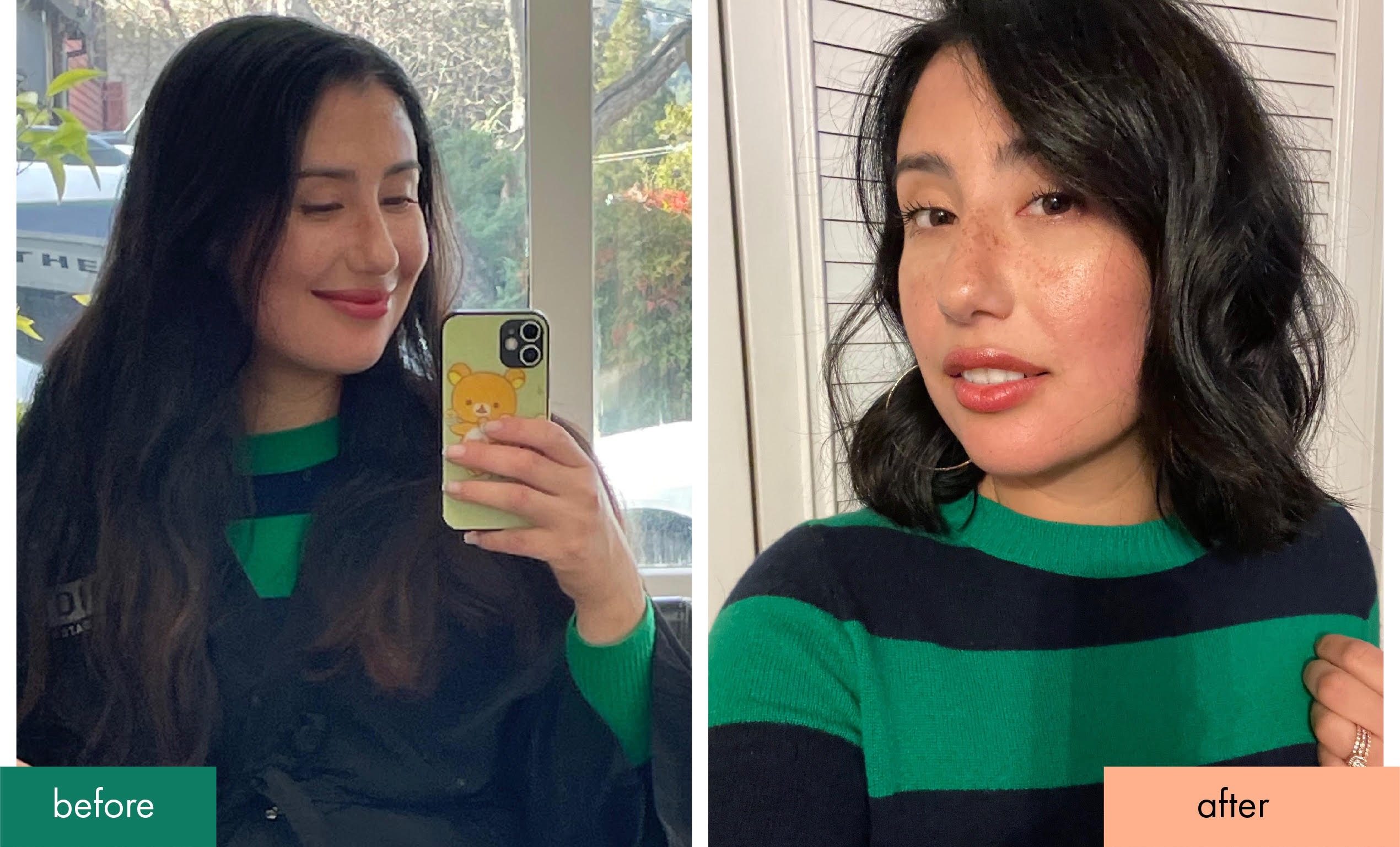 As I looked into the salon mirror, butterflies fluttering in my stomach, my stylist Gillian approached. I showed her two sets of photos: one with wavy bobs and another with long ’90s layers. But when she asked, “So, which are we doing today?” I heard myself say, “We’re going short.” For the next 30 minutes, I zoned out to the sound of Gillian’s cuts, snips, and chops, and let my worries fall to the ground, along with my long, black strands.