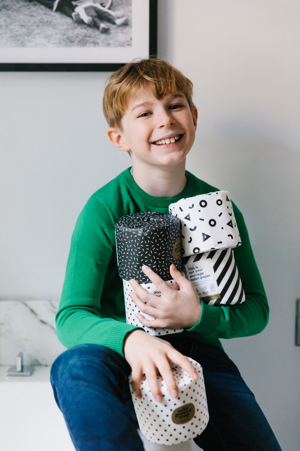 And thanks to their fun, graphic, recyclable wrapping paper, our toilet paper rolls are no longer eyesores on the counter. (We actually choose to keep them out on display.) Who Gives A Crap is a product we feel so, so good about buying and supporting.