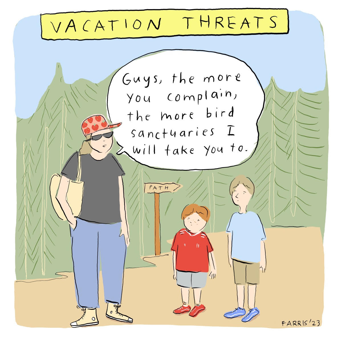 True story- I was standing in line at a store in the Florida Keys discussing with my husband whether our kids had it in them to visit a bird sanctuary. The man in front of us looked at our son and said “you want to see a bird? I’ll show you a bird!” and flipped off our family. Our bird sanctuary days were over before they began.