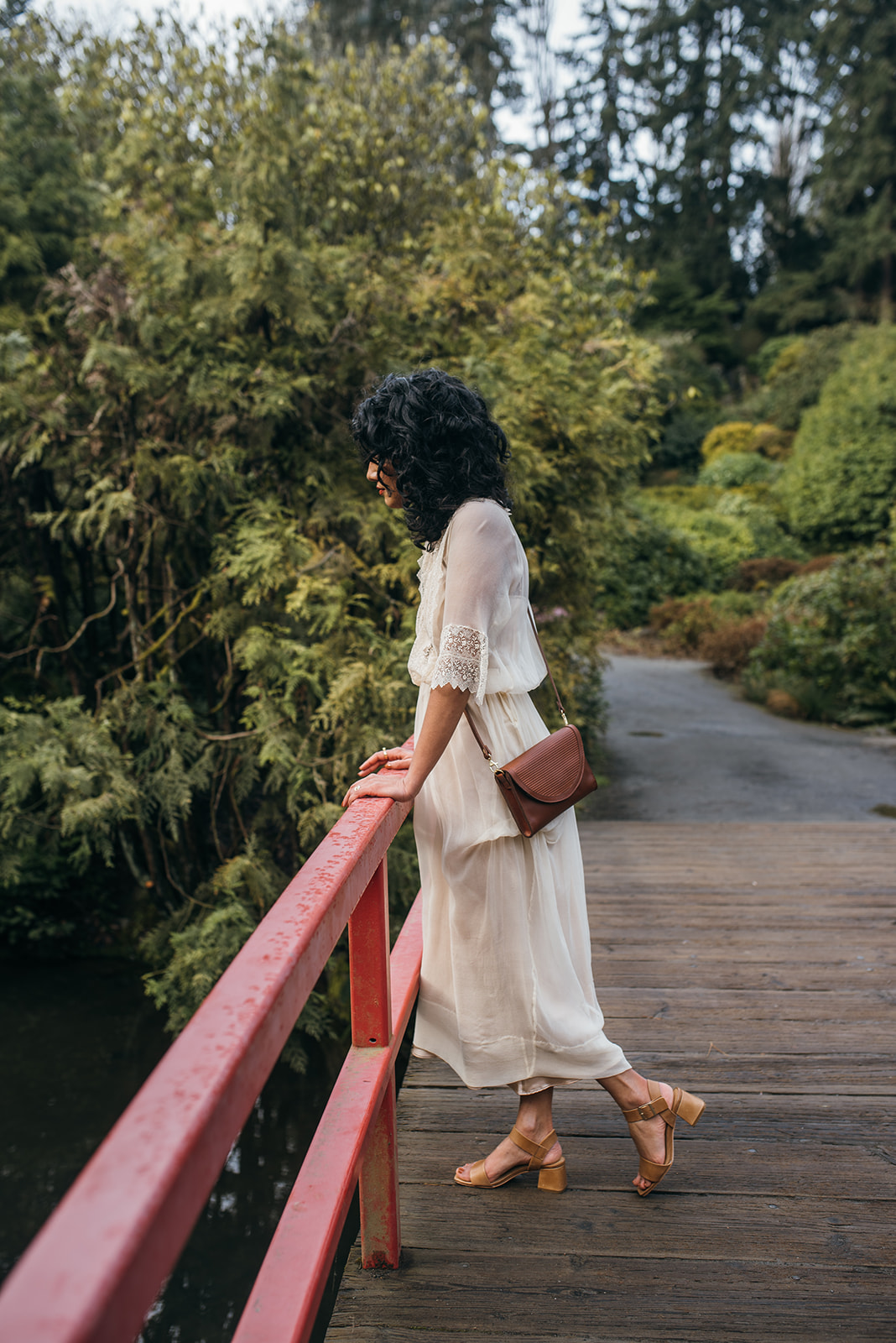 Heels: Stella Block Heel Sandal. Bag: Cleo Convertible Crossbody. Dress: vintage, similar.