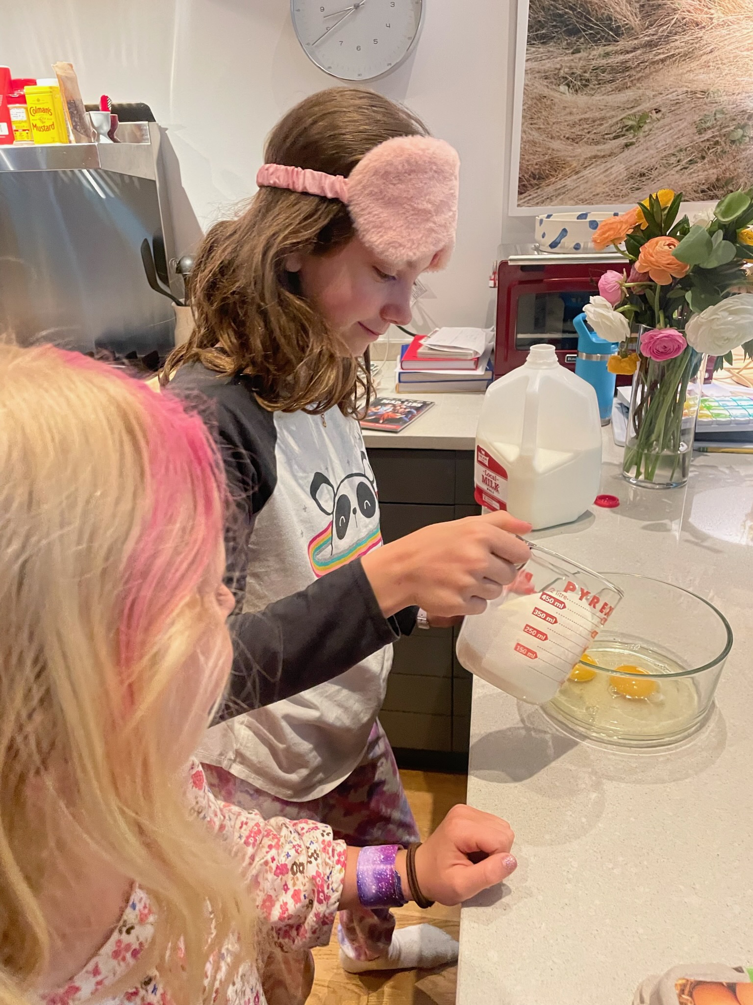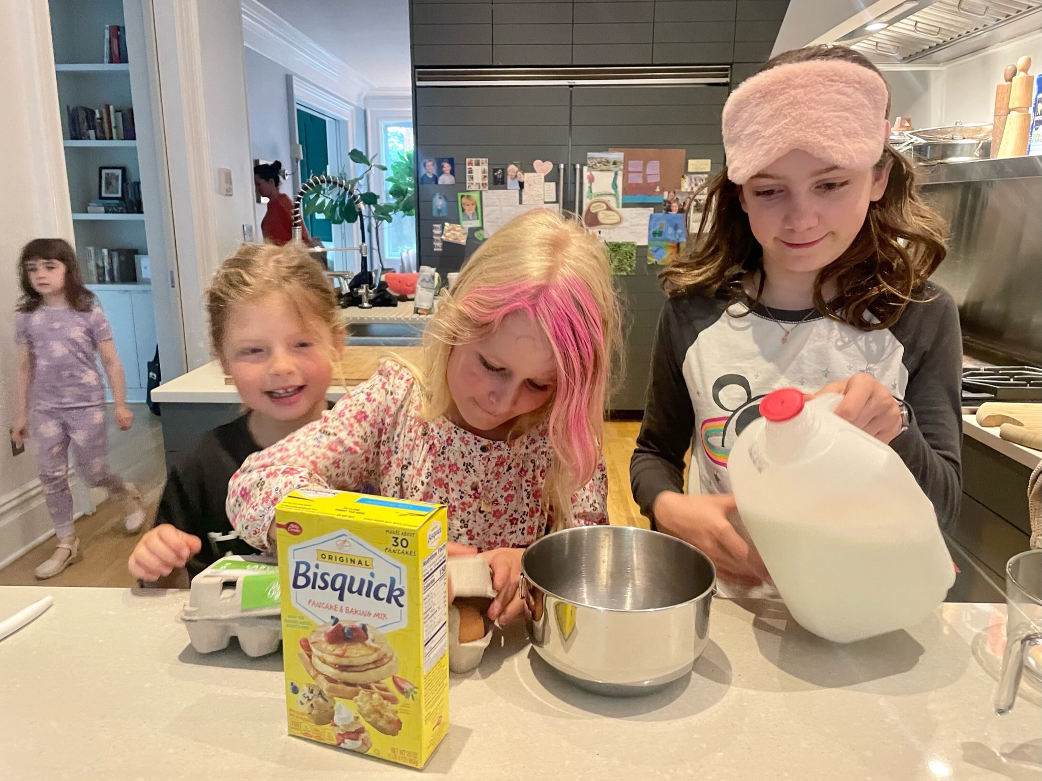 The next morning, the little dudes made pancakes and eggs, and the moms poured giant cups of coffee.