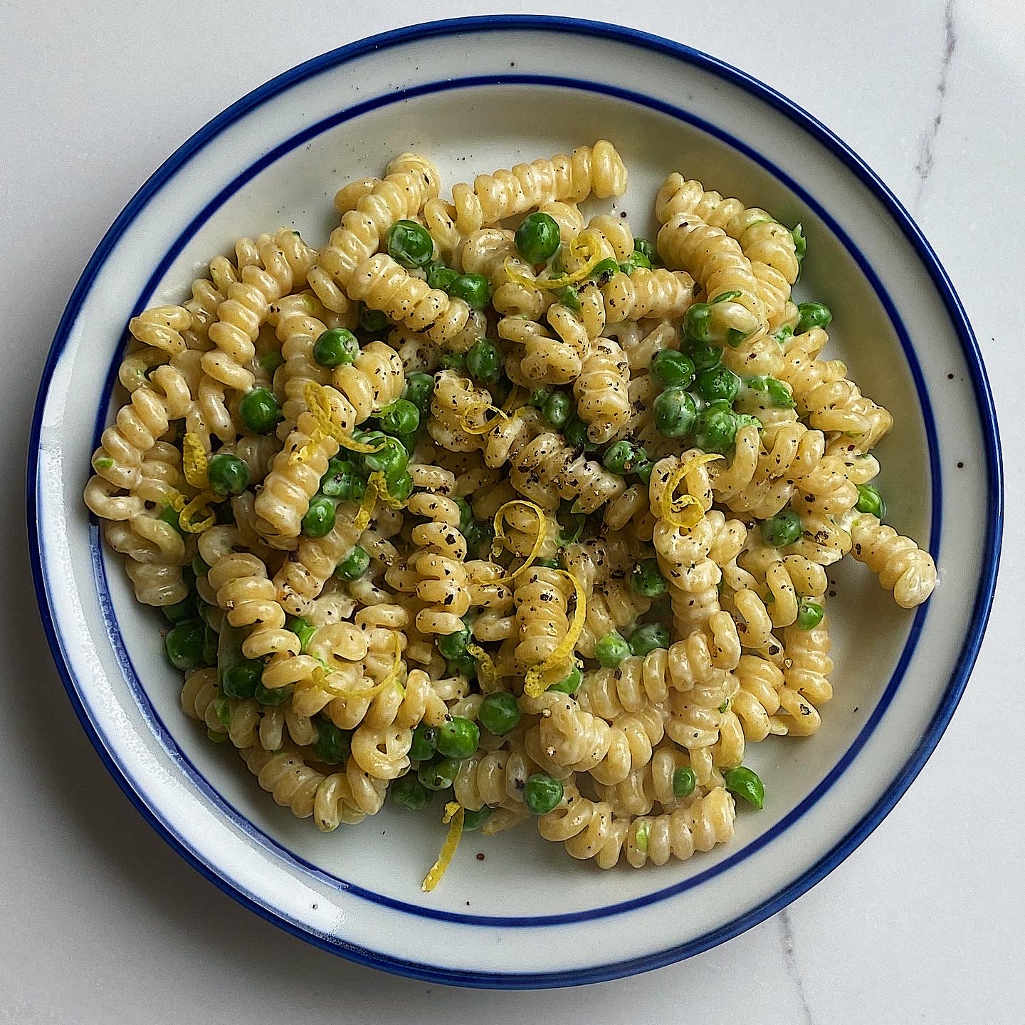 pasta Boursin and peas