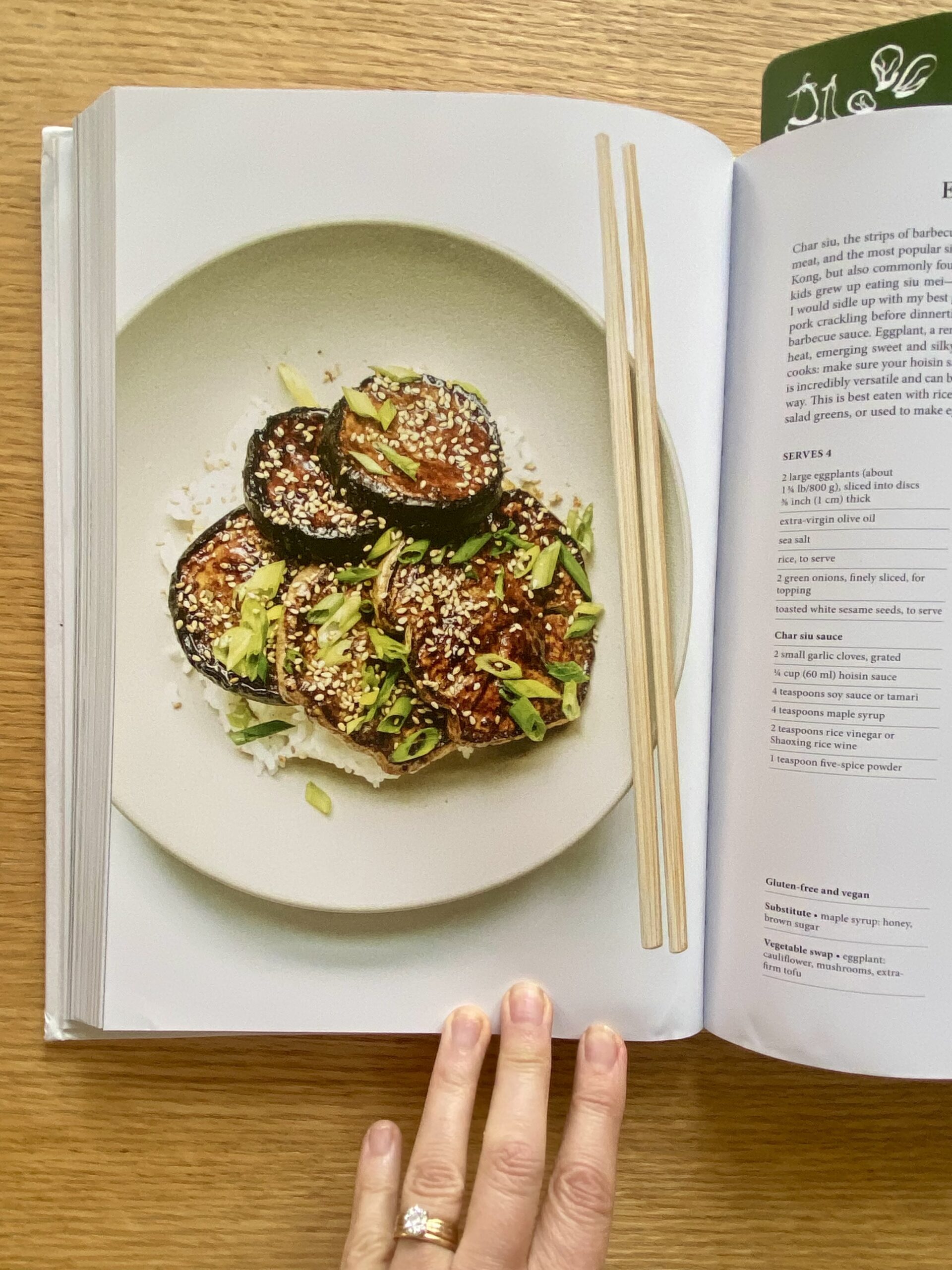 I especially love her vegetarian interpretations of iconic meat dishes — like in Cantonese Char Siu, where she replaces roast pork with eggplant…