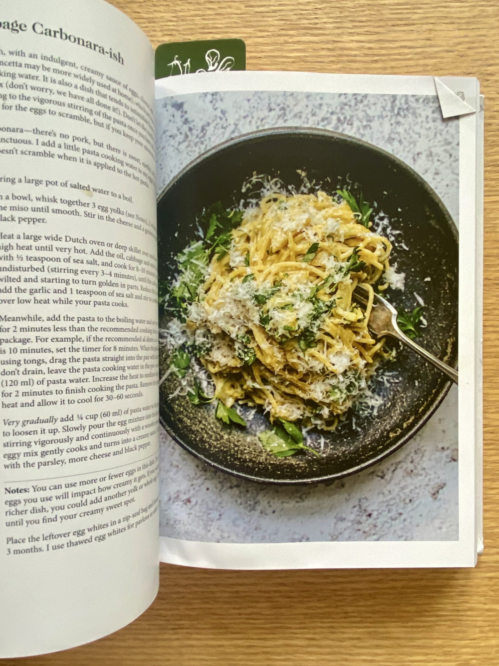 …And in her Cabbage Carbonara-ish recipe, where miso stands in for bacon, as the flavor bomb booster. I made it last night to a round of applause from my family.