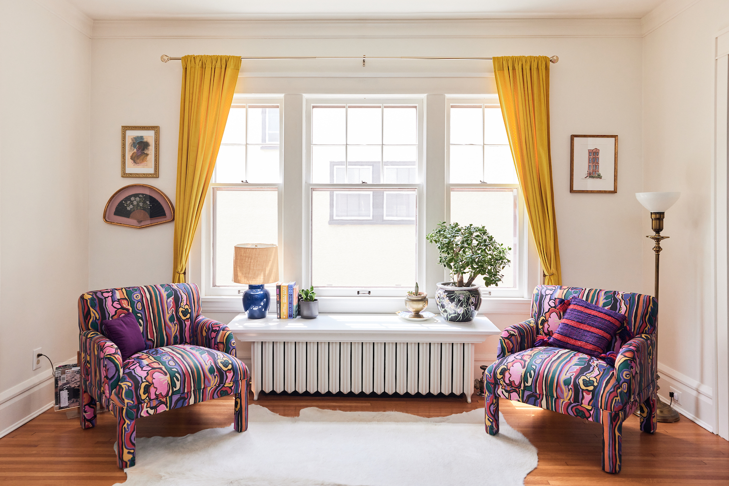 Chairs and floor lamp: thrifted. Rug: Rugs.com, similar.