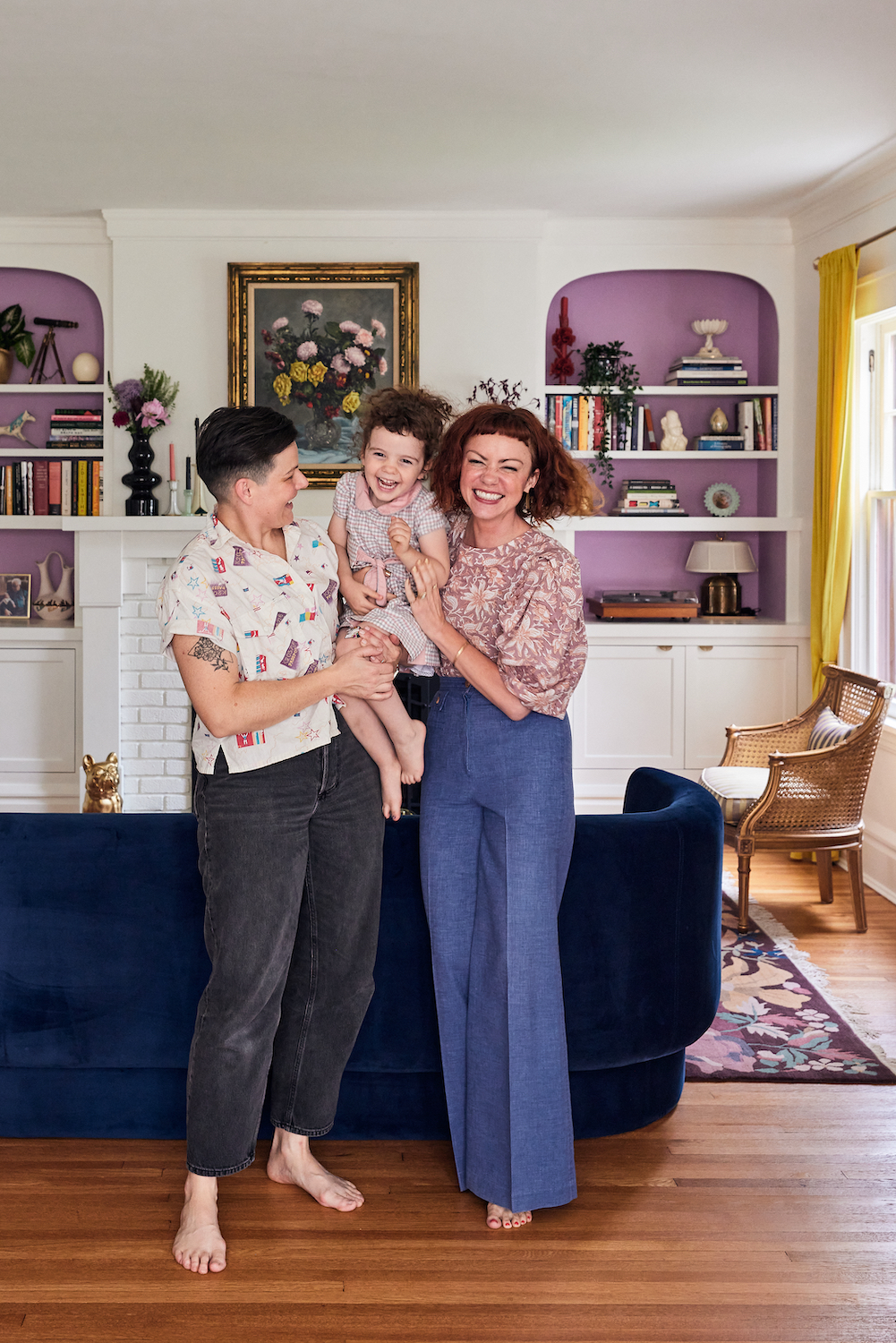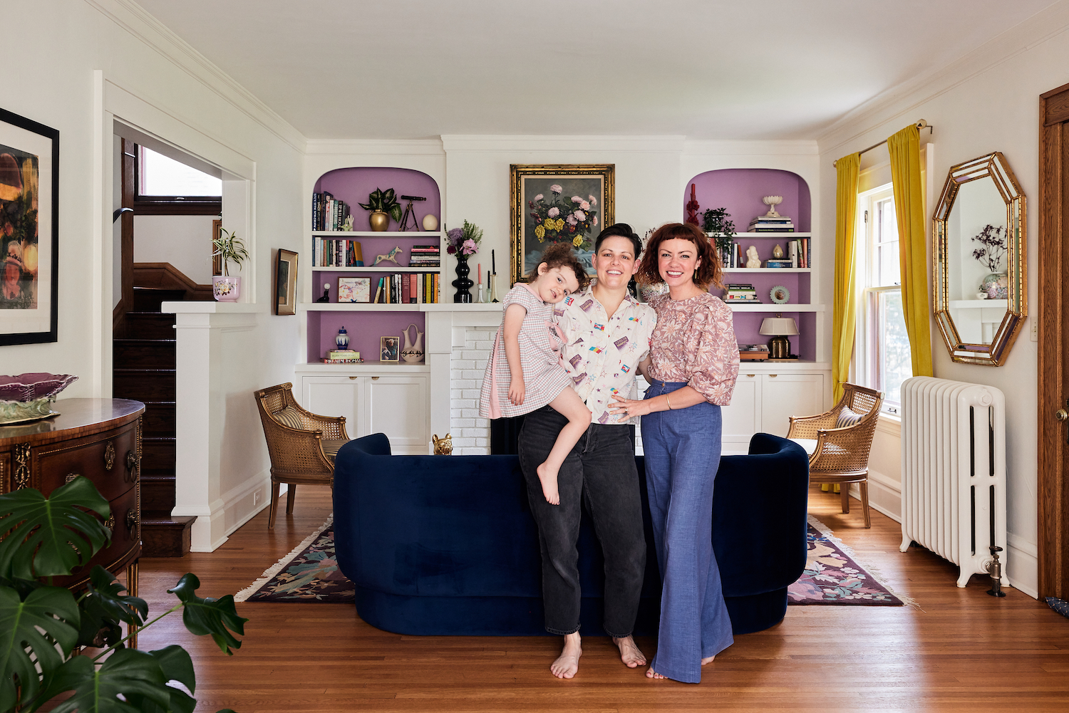 Therese Sterling-Little (right) lives in Minneapolis with her spouse, SL, and their four-year-old daughter, Henrietta. She and SL (who uses “they/them” pronouns) lived in Brooklyn for years before deciding to move back to Therese’s hometown to be closer to relatives. Three years later, the family has settled into their new community and bright house. Take a look around…