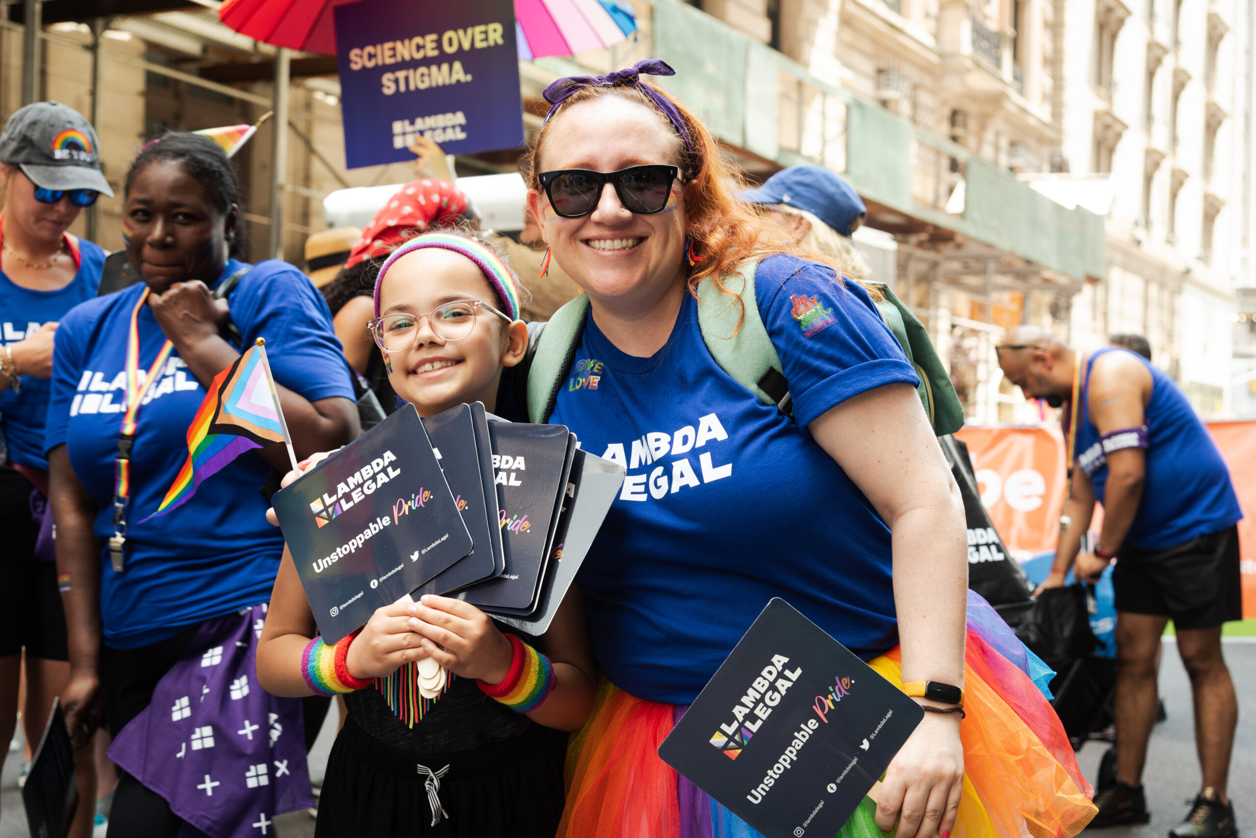 “I came out as queer one year ago (at 37!), and last Sunday, I walked in the NYC Pride Parade. Not only was I surrounded by my queer family, but my eight-year-old daughter joined me in the parade and proudly waved her flags. It was the happiest — and most at home in myself — that I’ve felt in a long time.” — Megan