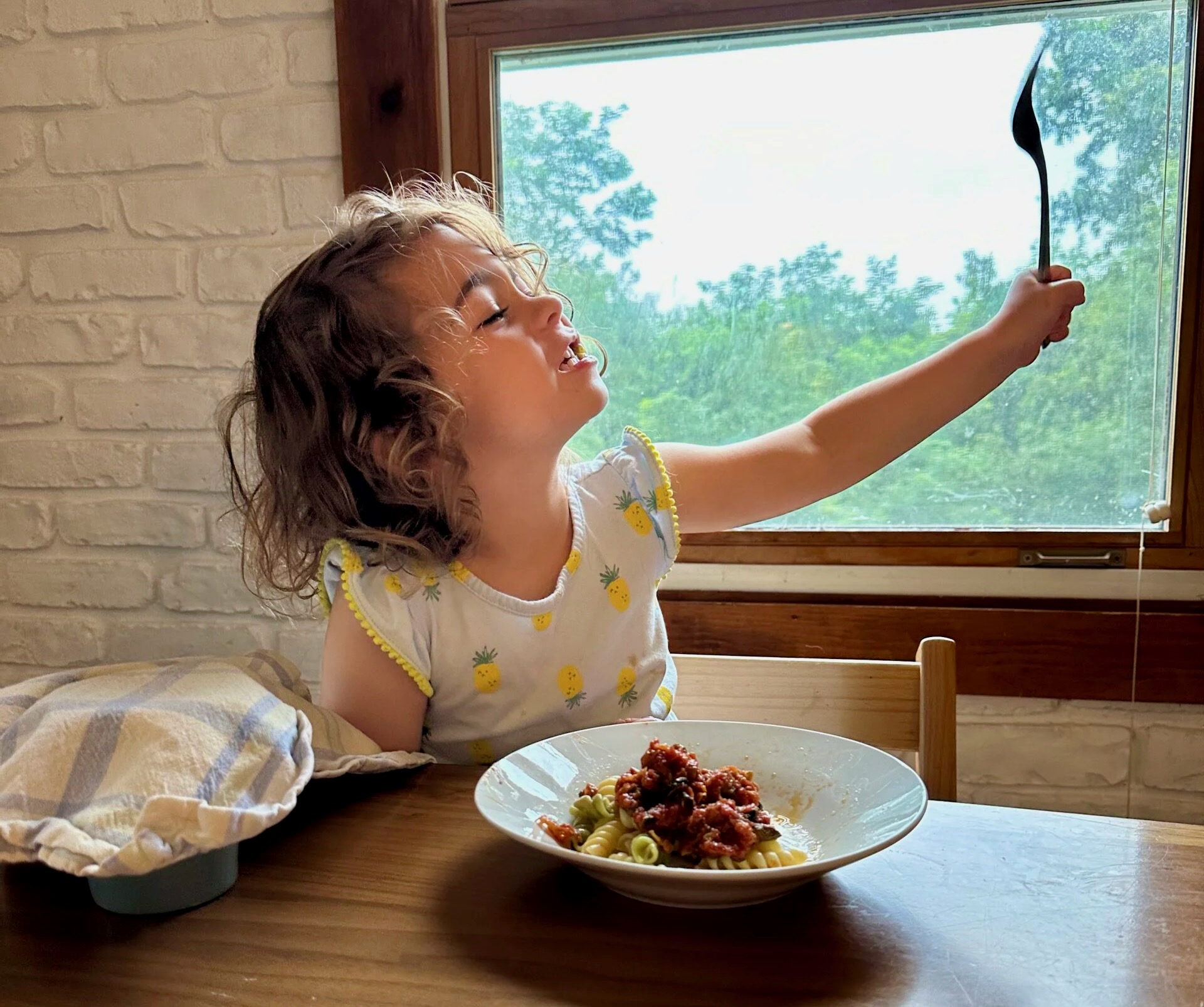 And that’s that! Take that baby off the heat and do with it as you like. On this particular night, I plopped it on top of rotini for an early family dinner with my husband and toddler. But later that night (not 11 p.m., but late enough) I came down to the kitchen for another helping. No pasta this time — just a nice, heaping scoop of The Amazing Zucchini-Tomato Thing in a cereal bowl, still cold from the fridge. Some things just taste better that way, right?