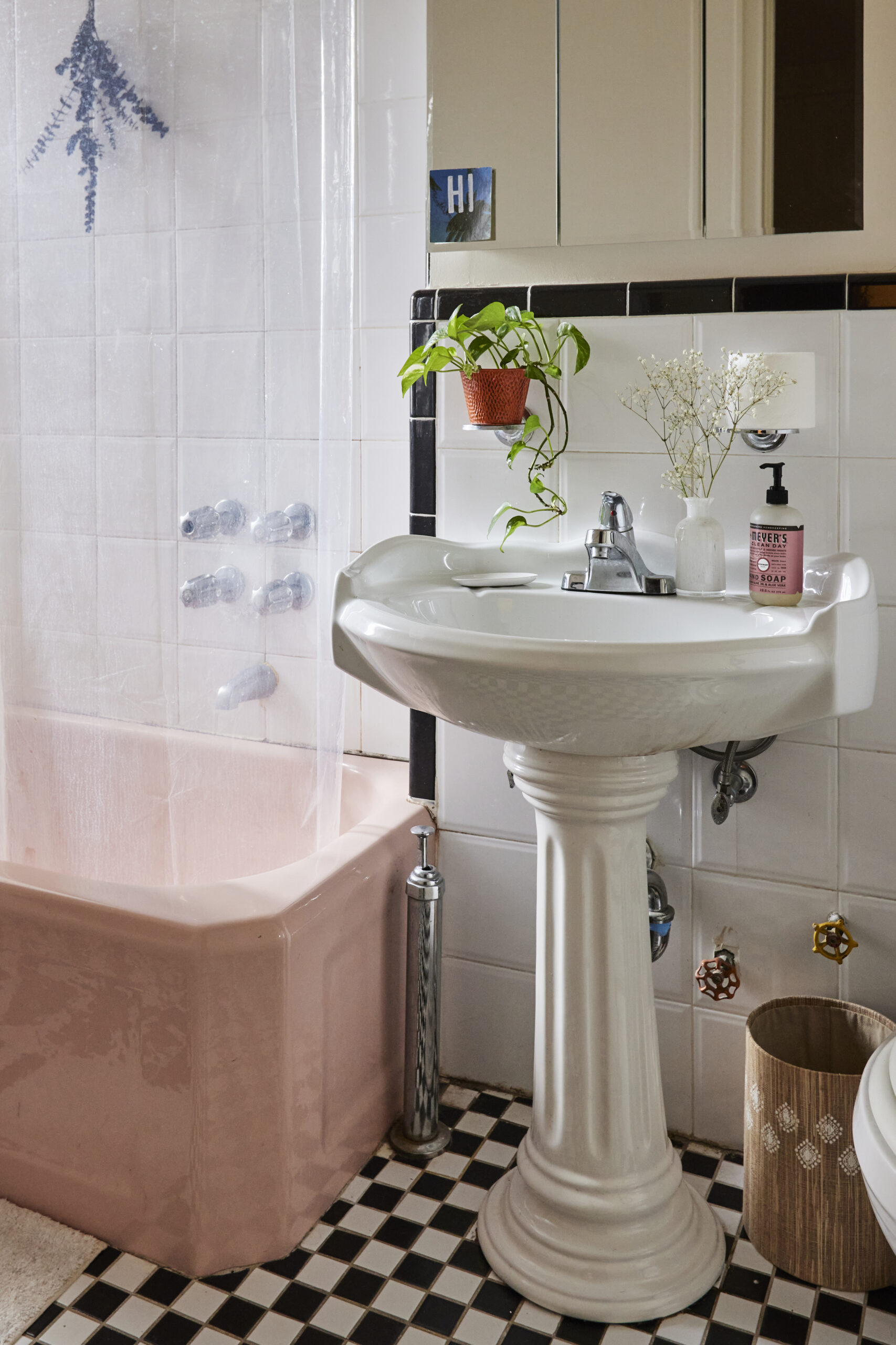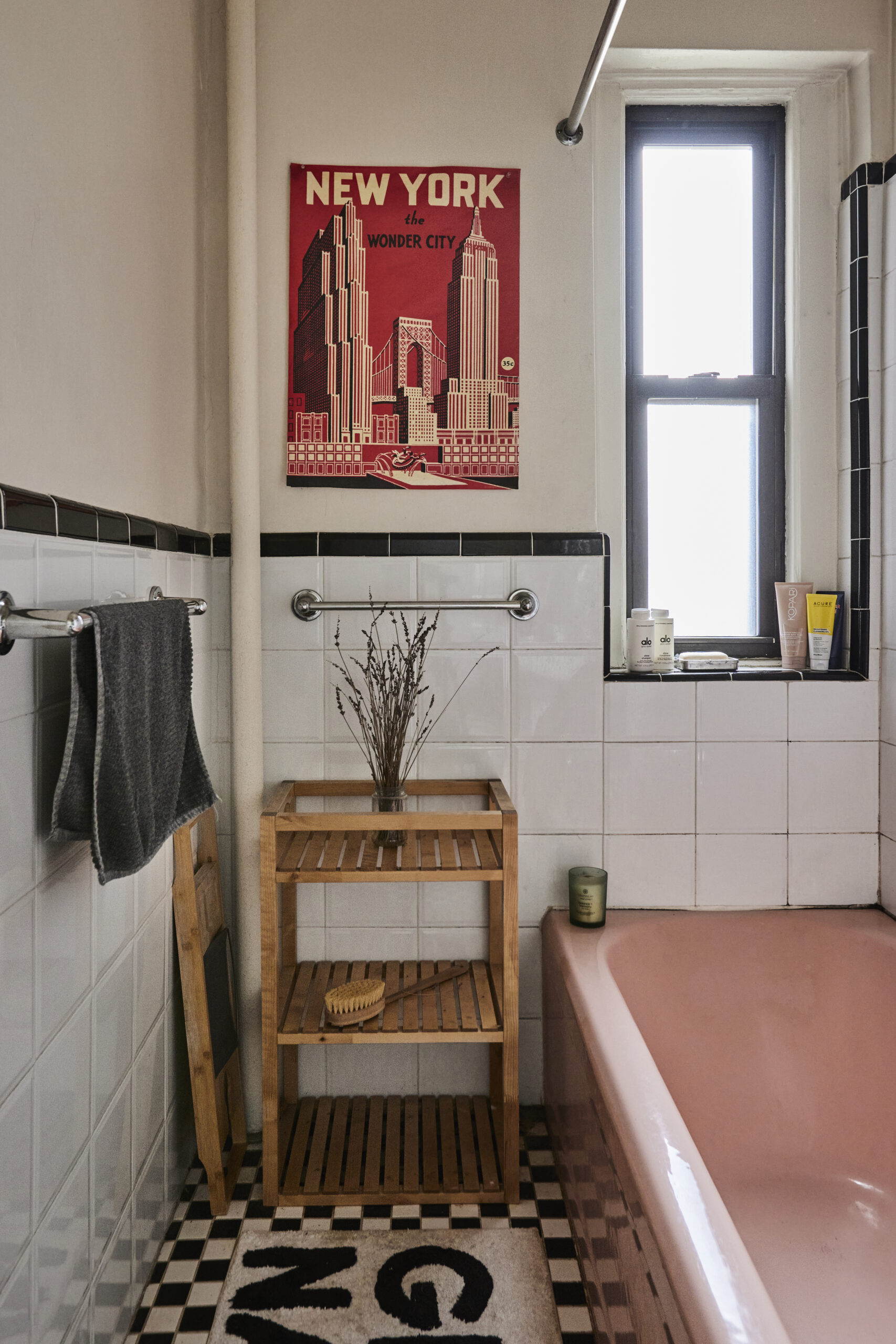 New York print: Strand Book Store, available here. Bath caddy: Wayfair. ‘Get naked’ bath mat: Urban Outfitters. Wooden shelf: hand-me-down.