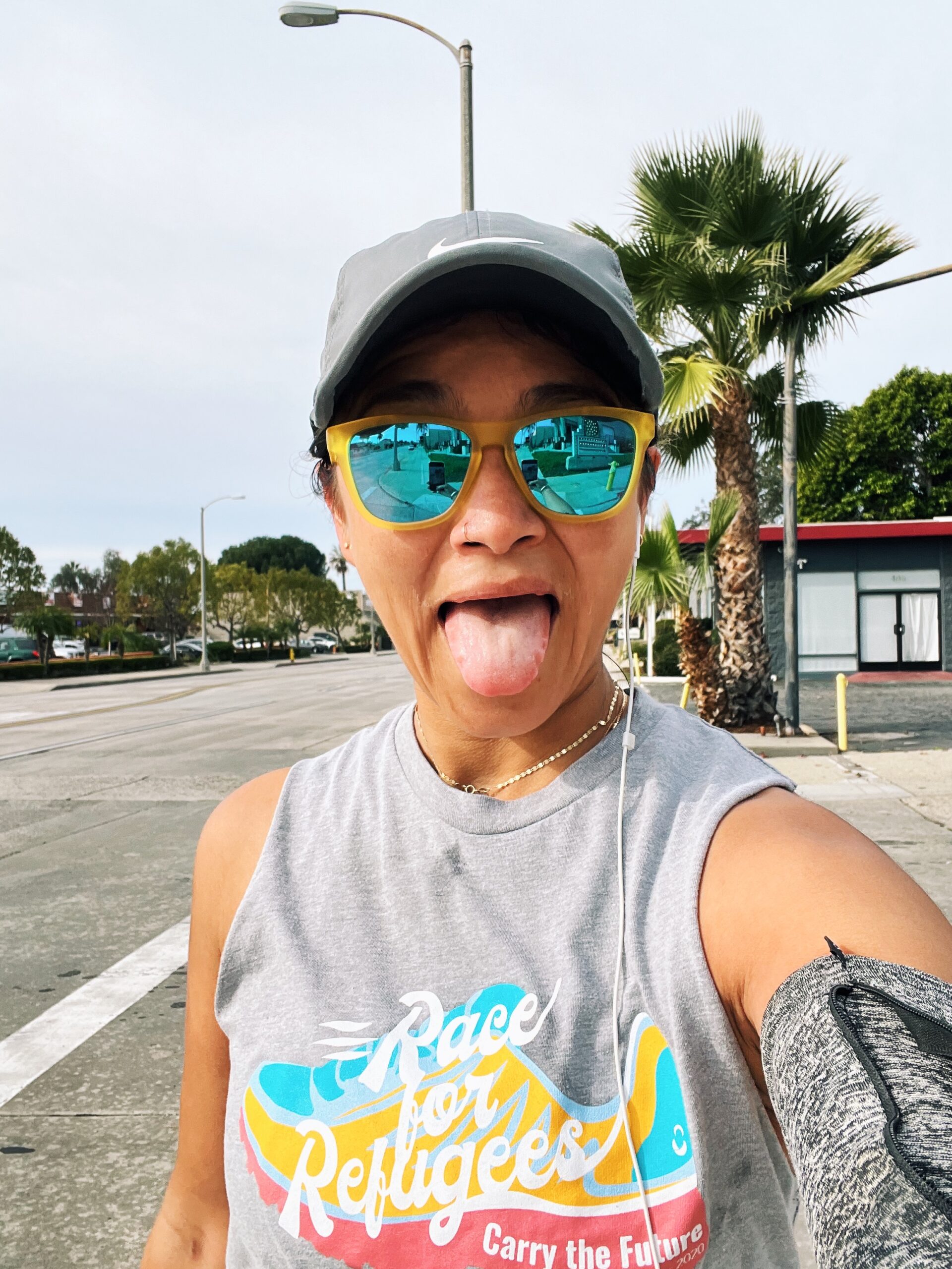 “I cut my cotton T-shirts into loose fitting tanks. They’re mostly old concert tees or shirts from non-profits I support. I love running with a shout out to something sentimental.” — Priscilla Vega