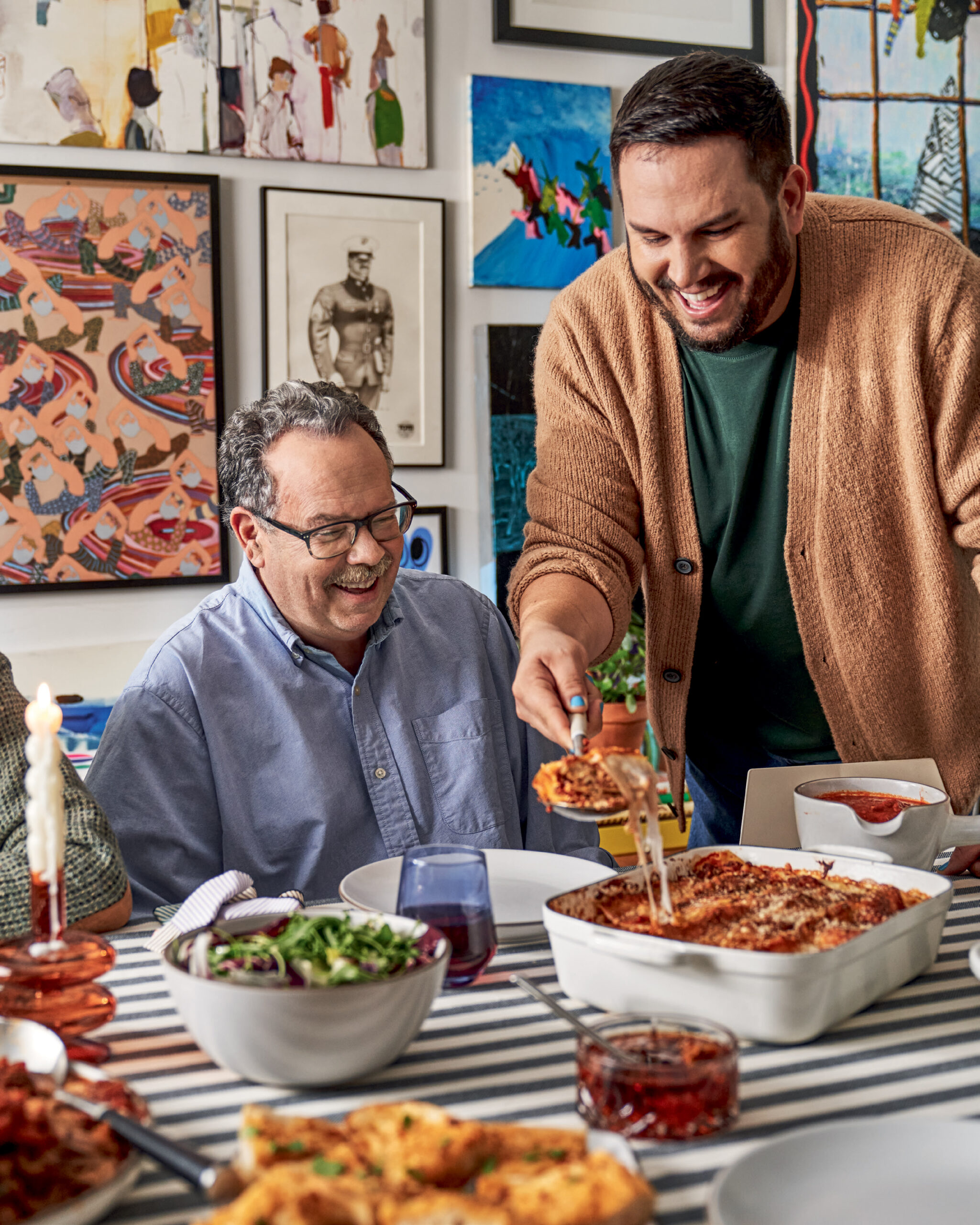 Pelosi, known to most as Grossy Pelosi (the nickname is a riff on the main character in the movie Never Been Kissed), exploded on the scene during the pandemic when he chronicled his home-cooking escapades on Instagram, inviting everyone along to (virtually) join him. And it’s easy to see why so many did: His food is big, his world is technicolor, and his vibe is joyous. Overflowing pots of meatballs, stuffed-high Italian subs, messy birthday cakes and gooey cinnamon buns, cheesy breakfast sandwiches, rigatoni swimming in his famous vodka “sawce.” And now, I’m delighted to report, he’s captured all of that joy between two covers in his first book Let’s Eat.