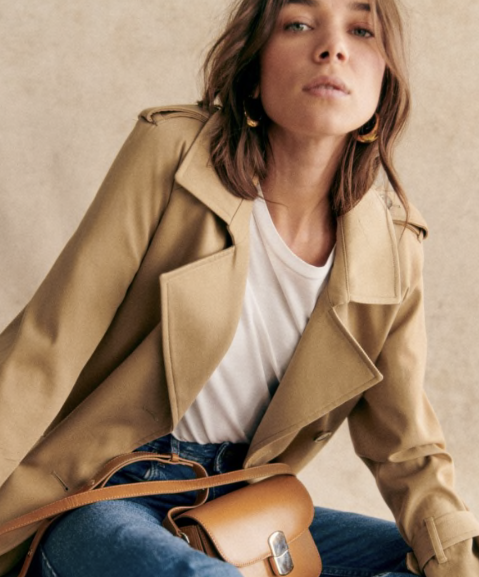 It’s trench coat season in NYC, and I’m busting out the Sézane version I’ve had for years. It’s 100% cotton and looks great over any outfit — from fisherman sweaters, to party dresses, to pajamas when dropping the kids off at school.
