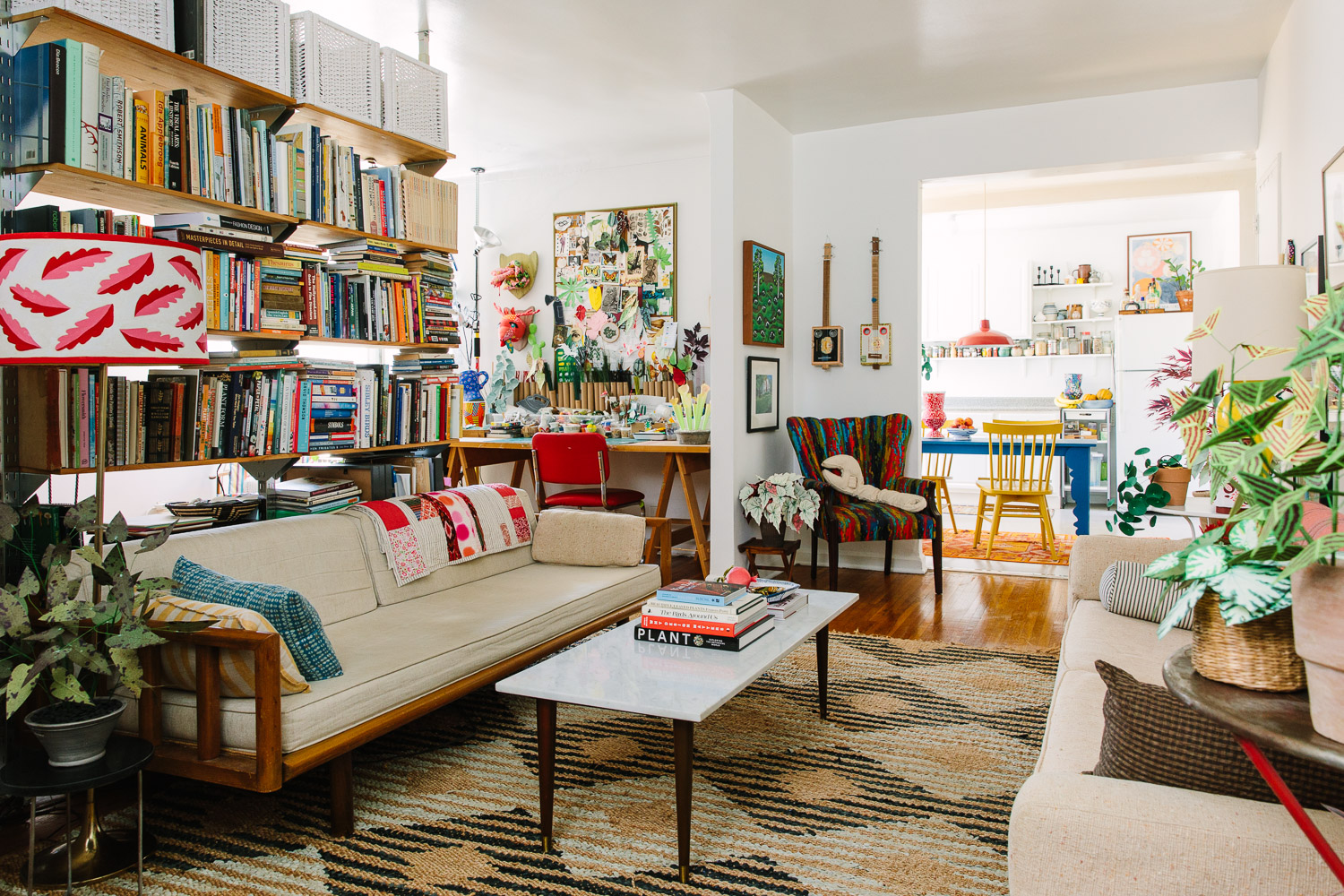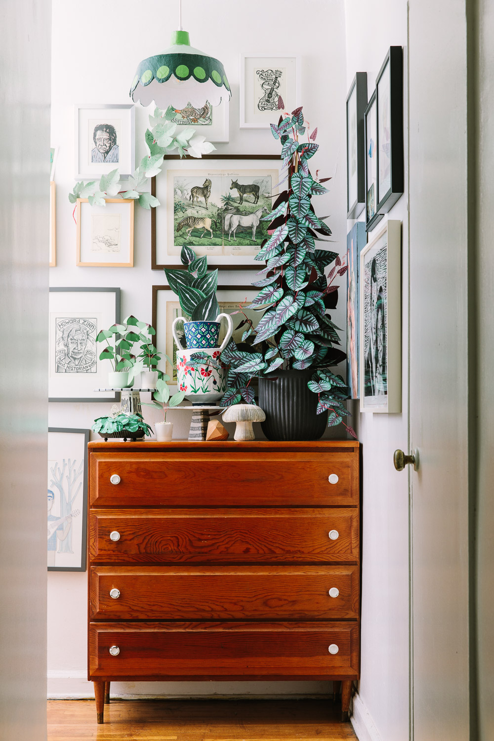 Paper leaves spilling out of papier—mâché pots are the first things you notice when stepping into artist Corrie Beth Hogg’s Brooklyn apartment. “The first plant I made from paper was my fiddle leaf fig,” she says. “I wanted an actual tree at home but I knew no plant would survive in our windowless living room.” Here, Corrie gives us a look around, with photos by Christine Han