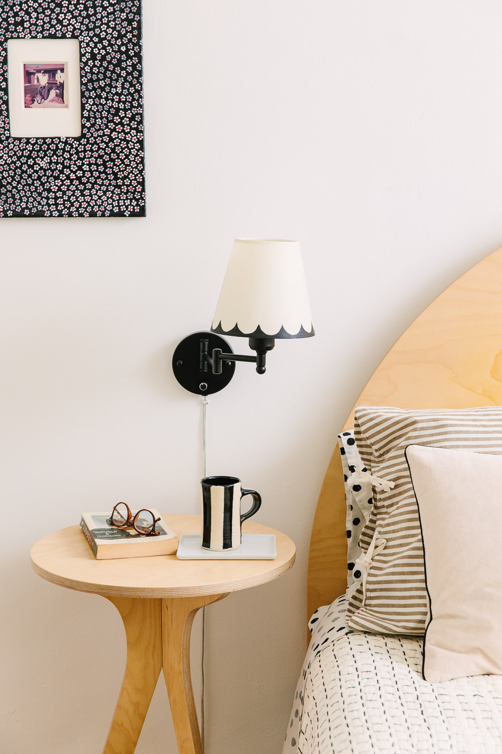 On mixing patterns: I wanted to keep our bedroom calm but still true to my love of playful patterns. So, instead of experimenting with color, I worked with tonal varieties and scale shifts. For example, if there’s a a tiny print — like a grid or ditsy florals — it can look good with bigger stripes or large blocks of color. I reach for patterns when I dress myself, too. I guess part of mixing patterns is just not caring whether it goes!