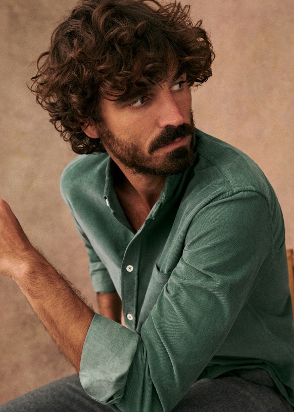A velvet shirt, $130, for dinner dates; or a cotton sweater, $45, for knocking around on weekends.