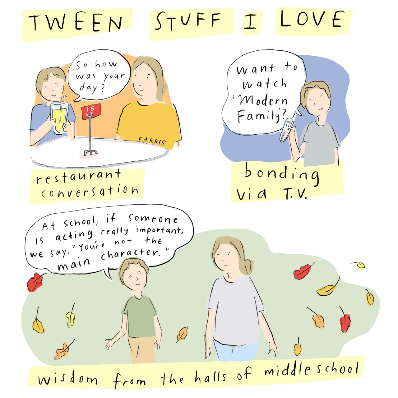 I also like when they say “I’m having my main character moment”and it’s a positive or describes a hard time too they’ve had. And I often hear “It’s not that deep mum”.