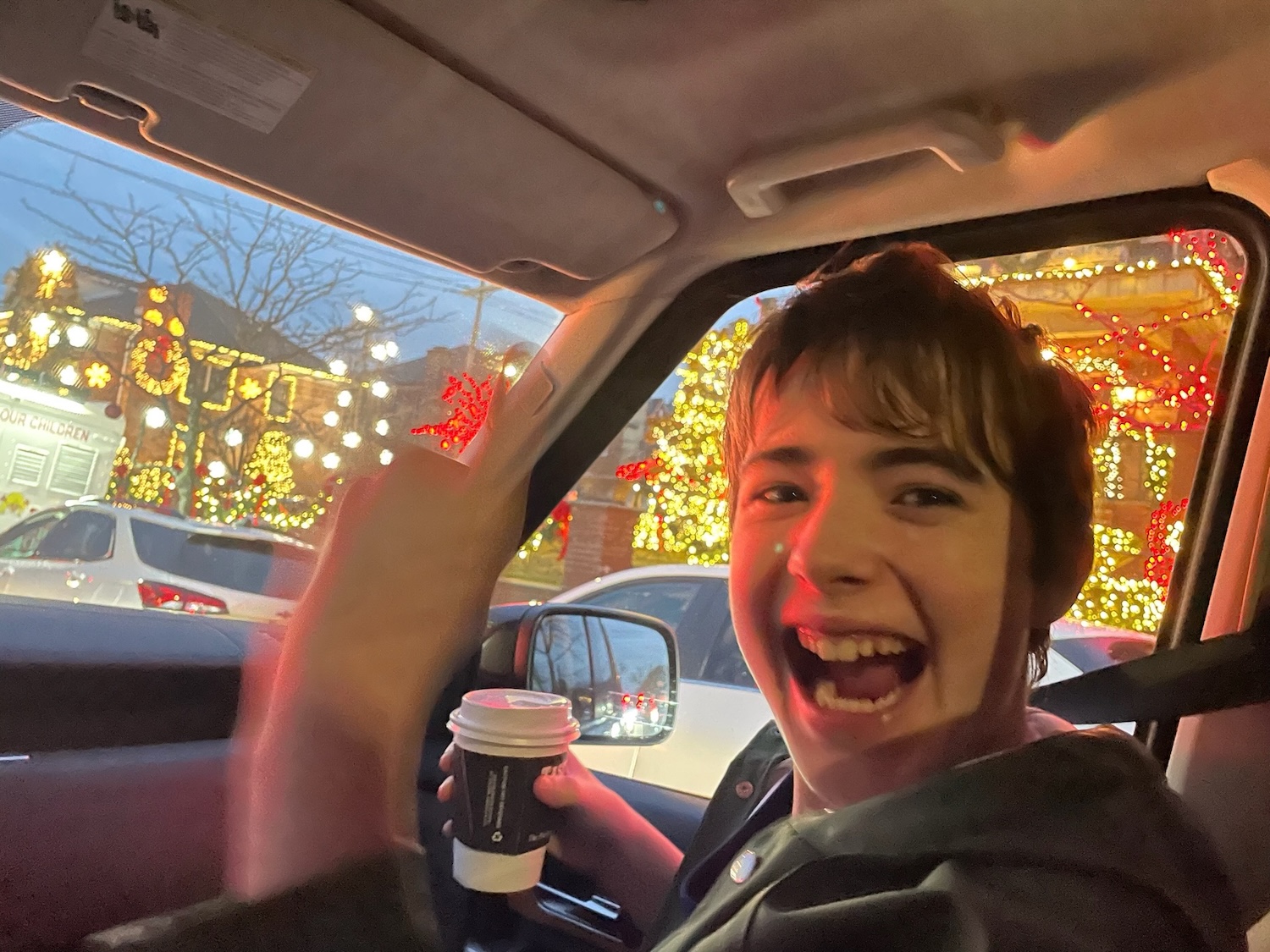 The excursion was 13-year-old Toby’s idea, so he sat shotgun. He also created a holiday playlist just for the occasion.