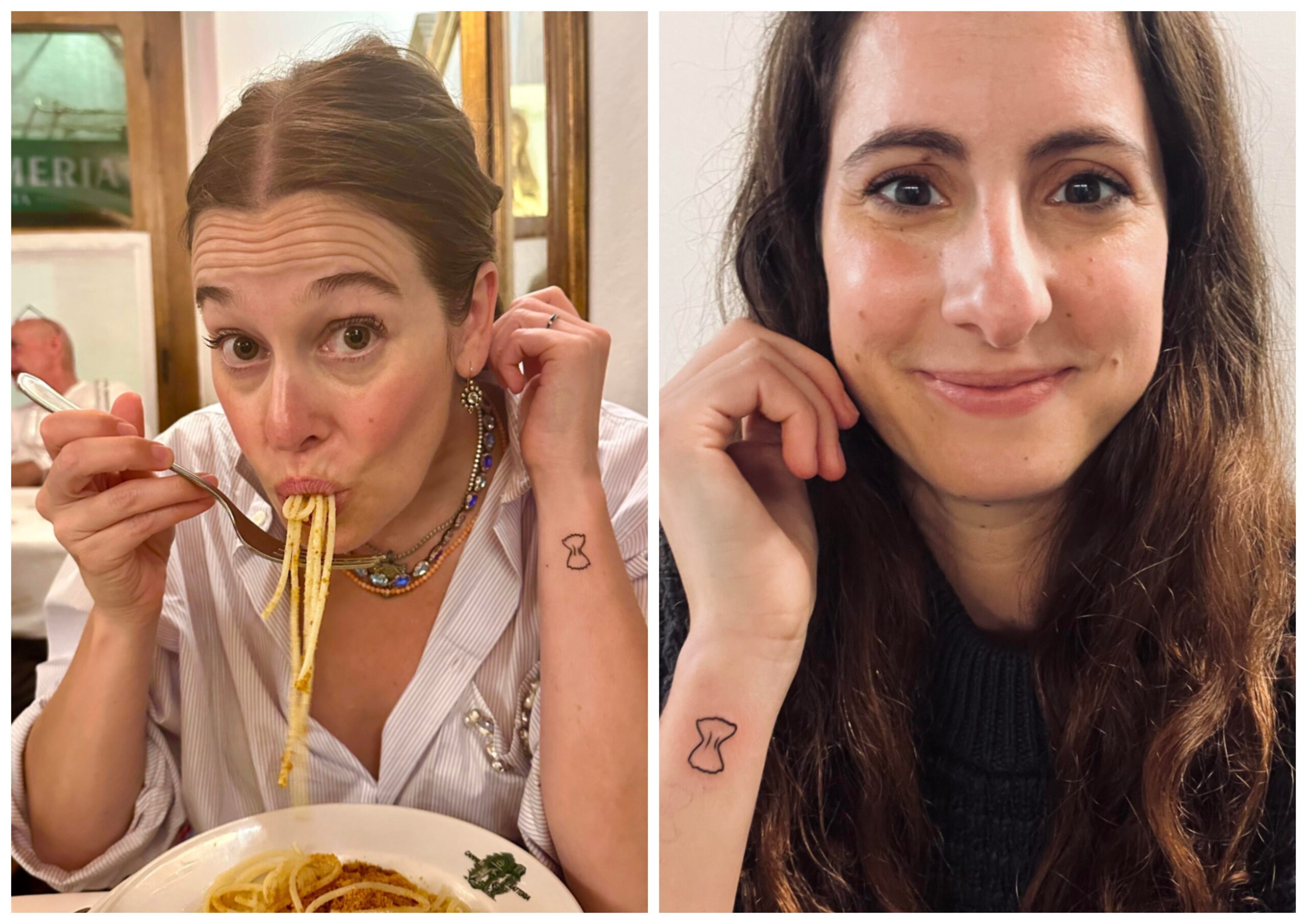 We recently shared 12 reader photos, including Kim’s pasta tattoo (left). Then, a few weeks later, I got an email from a reader named Stephanie (right): “I couldn’t stop thinking about how cute Kim’s tattoo was, and a NYE trip to Toronto with my best friend seemed like the perfect time to get one!” Which begs the question: Should we all get matching pasta tattoos???