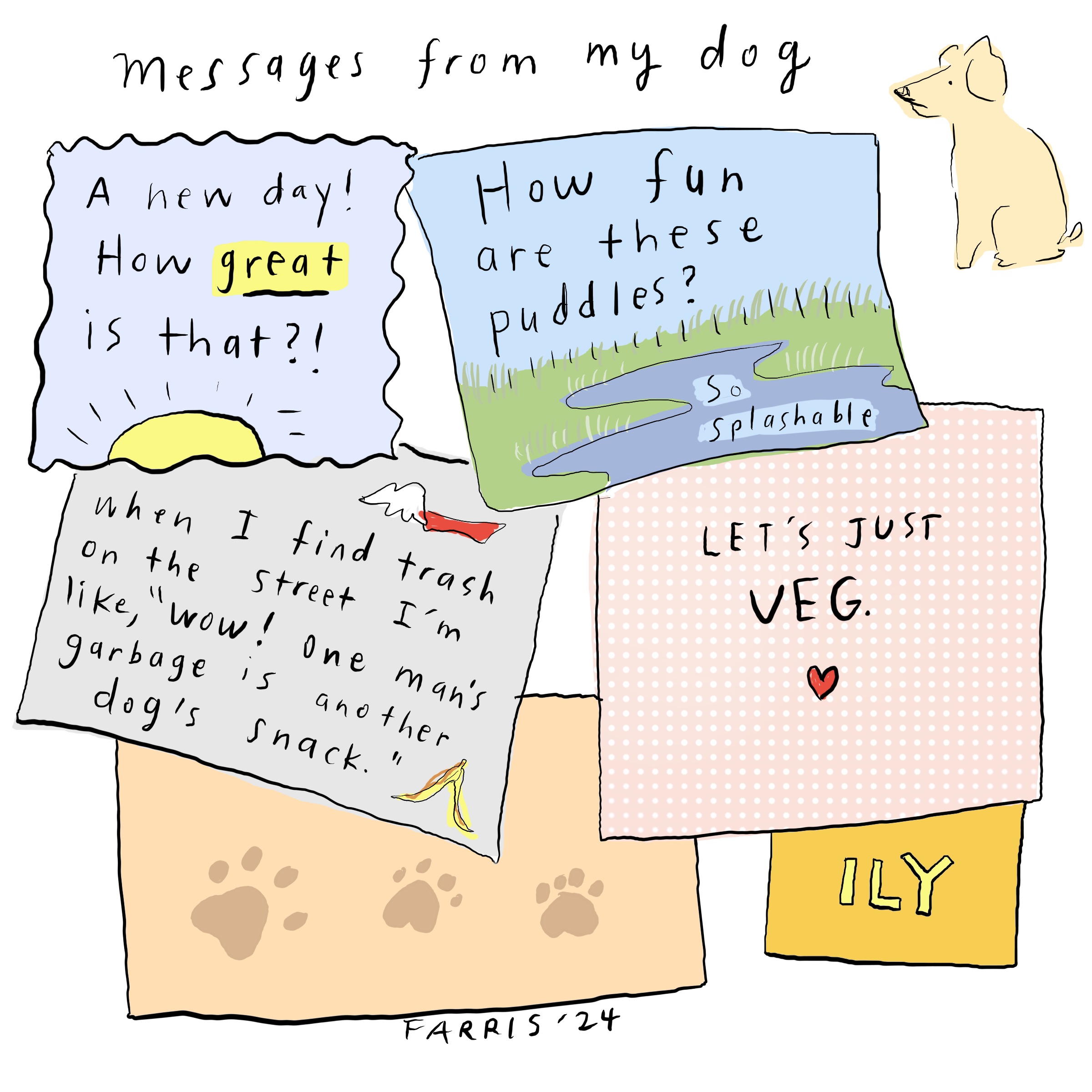 My labrador would leave me multiple sticky notes asking to play fetch, tug of war, and going on a walk to find sticks.