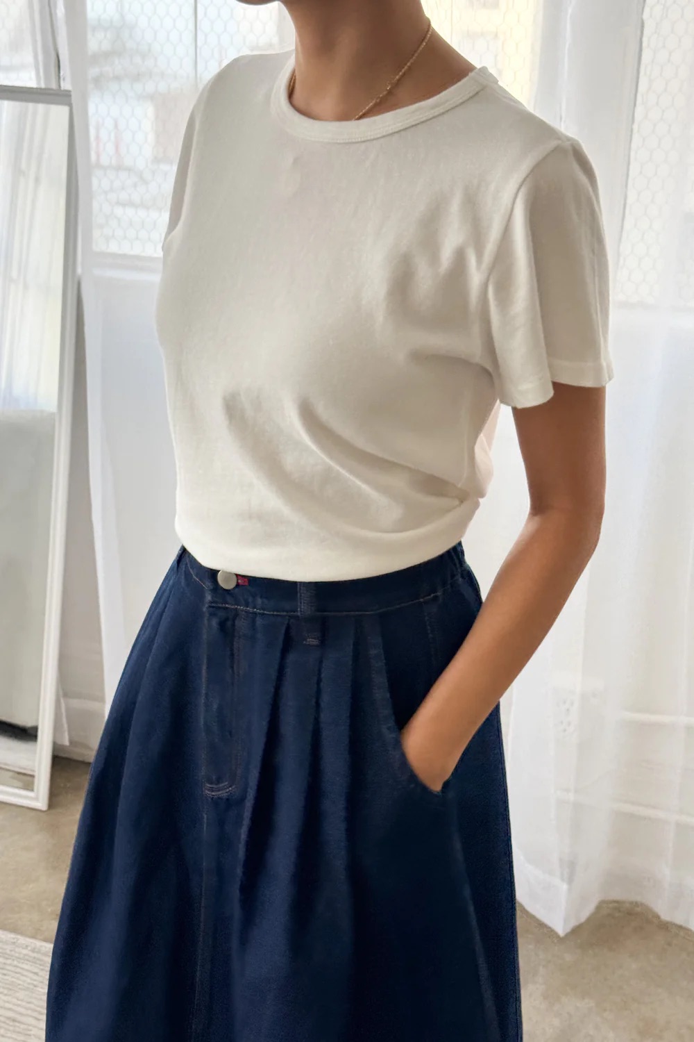 I’ve spend 45 years trying to find the perfect white tee, and this month I finally found it! The little boy tee from Le Bon Shoppe — it’s slightly cropped (easy to tuck), heavier-weight 100% cotton (holds a nice shape), and the ideal sleeve length (not too short, not too long). Love love love.