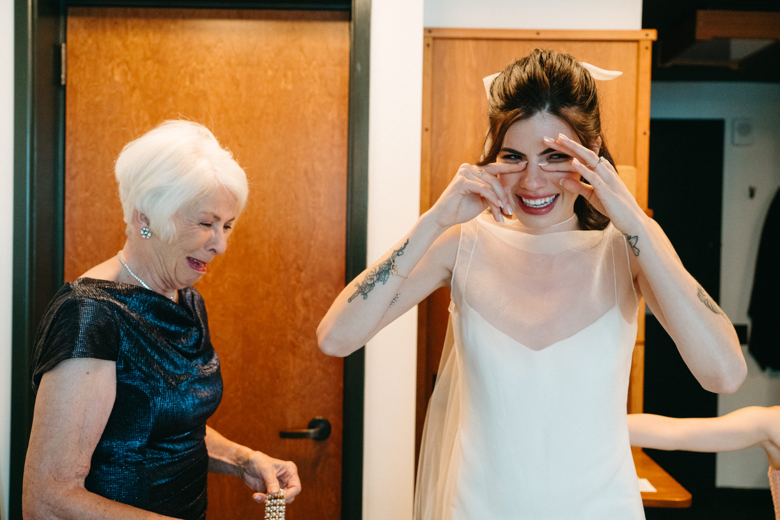 Marin: My ‘Nanny,’ who’s my mom’s mom, was staying in the same hotel. So, when I was dressed, I went right down to her room for a ‘first look.’ My eight-year-old sister tagged along, which was a special impromptu addition.