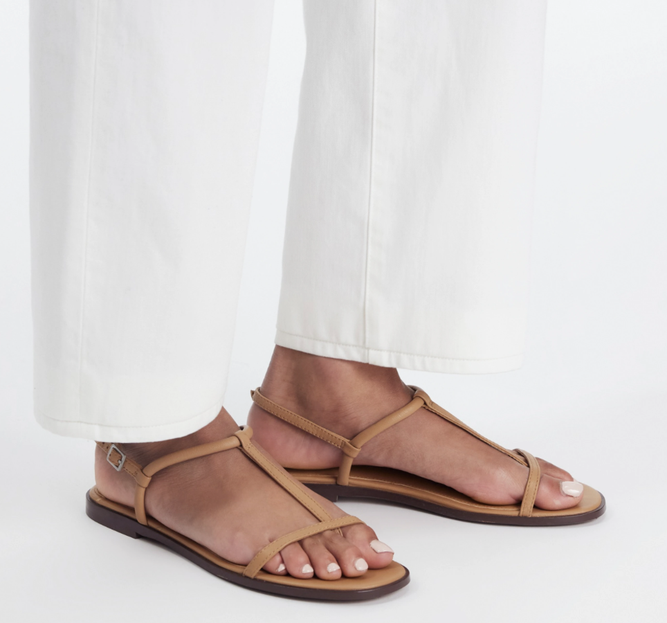 3. Brown T-straps. I’m digging the pale brown of these sandals (which run narrow, btw!), and the snakeskin version is also very cool. (Here’s a budget option, too.) Another easy style — which you can slip your feet into, if you’re juggling bags and toddlers — are two-strap slides.