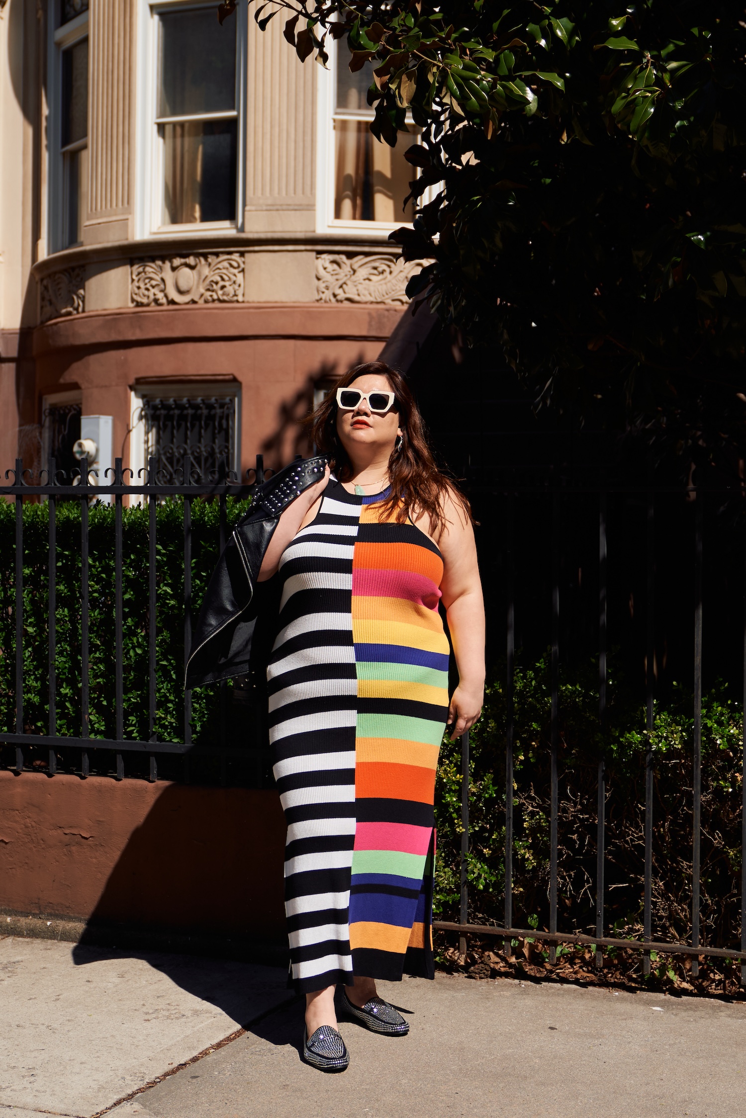 “We’re supposed to show off the parts of our bodies that society has deemed acceptable and hide the rest. But it’s exhausting to live like that. I’ve been deemed to have nice calves but less nice arms. So, do I now have to spend my whole life trying to figure out how to cover my arms?! At this point in my life, I am perfectly happy to wear whatever makes me happy.”